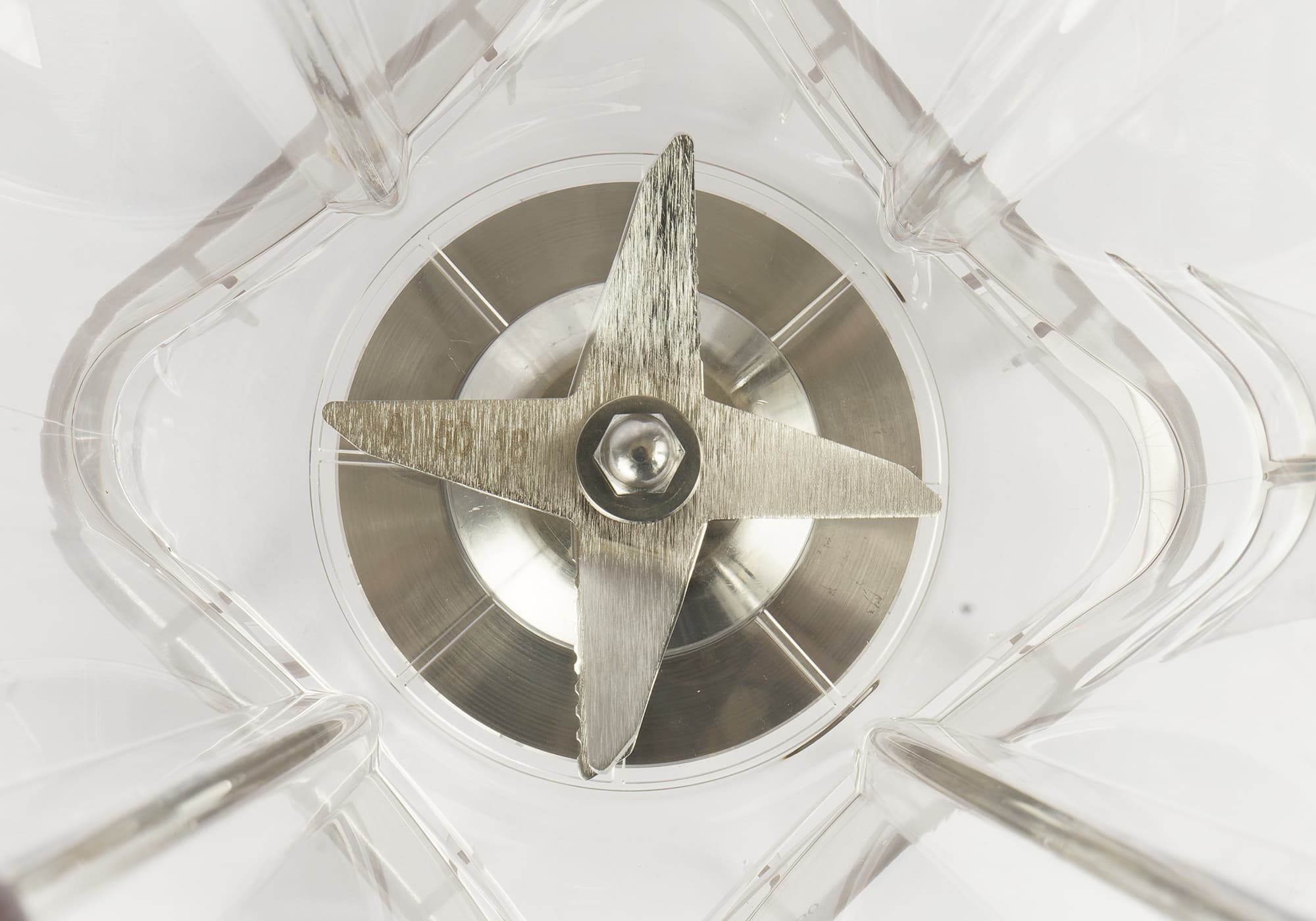 Полностью металлический несъемный ножевой блок состоит из шести лезвий, расположенных в два уровня: два внизу и четыре сверху. Одно из лезвий имеет зубчатую грань.