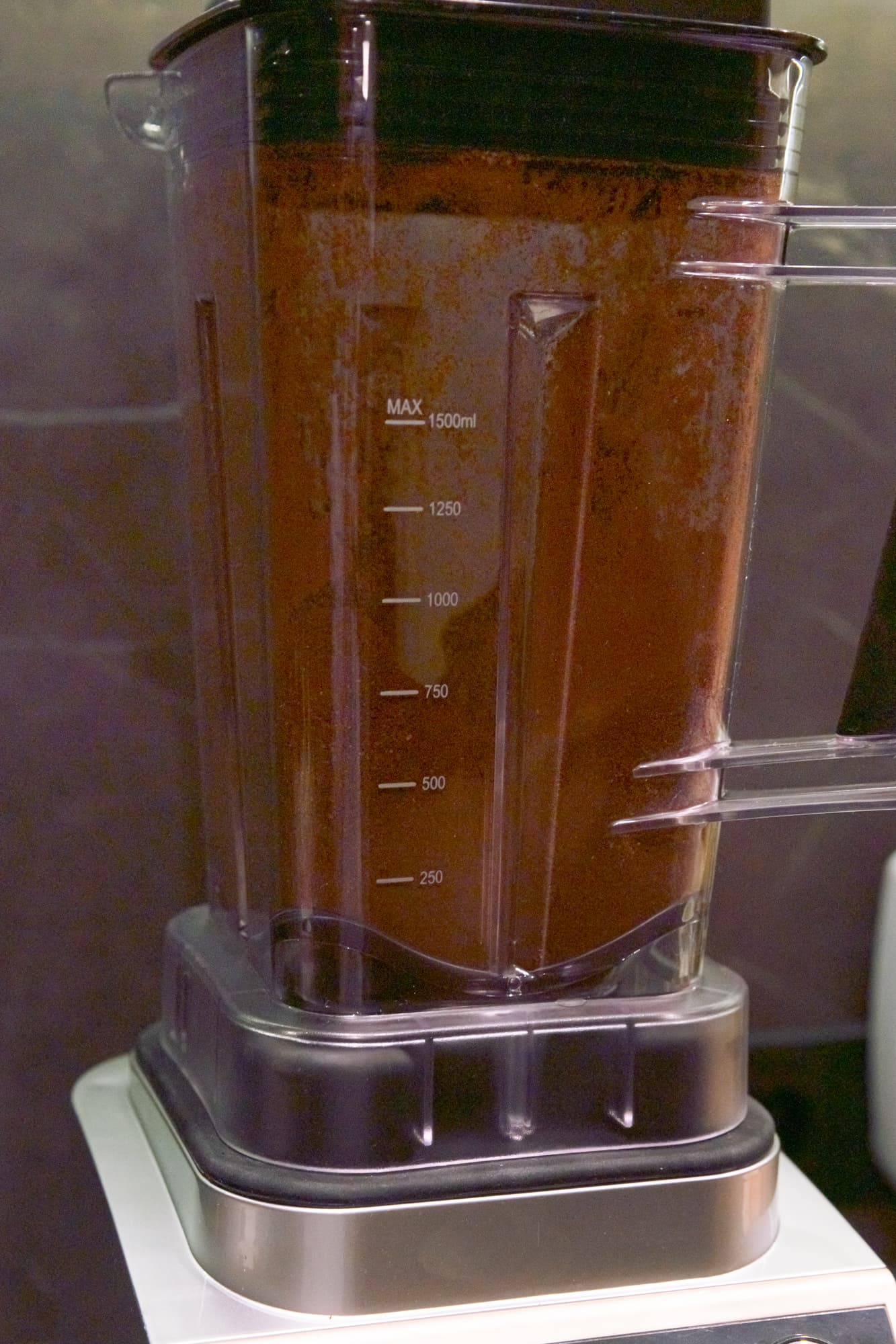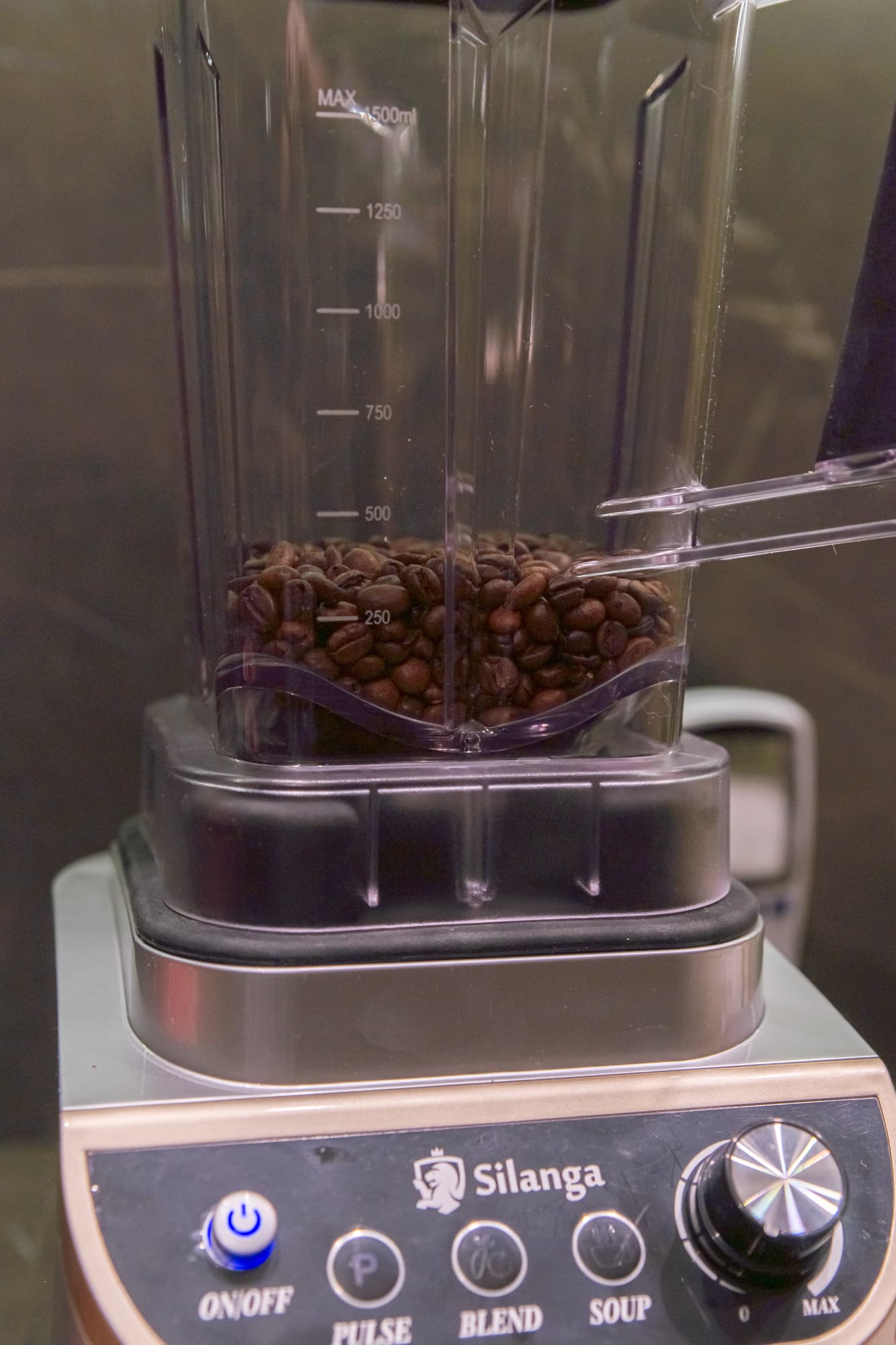 Заполнили кувшин кофейными зернами немного ниже, чем до отметки 500 мл. Включили 3-ю скорость, а потом повысили ее до 5-й. Можно было остаться на 3-й, но так получалось быстрее. Блендер справился ровно за 1 минуту.