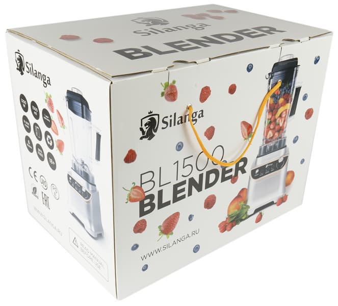 Стационарный блендер Silanga BL1500 Pro поставляется в двух коробках. Первая, внешняя коробка из коричневого картона — транспортировочная. На ней напечатаны общие сведения об устройстве и его технические характеристики.