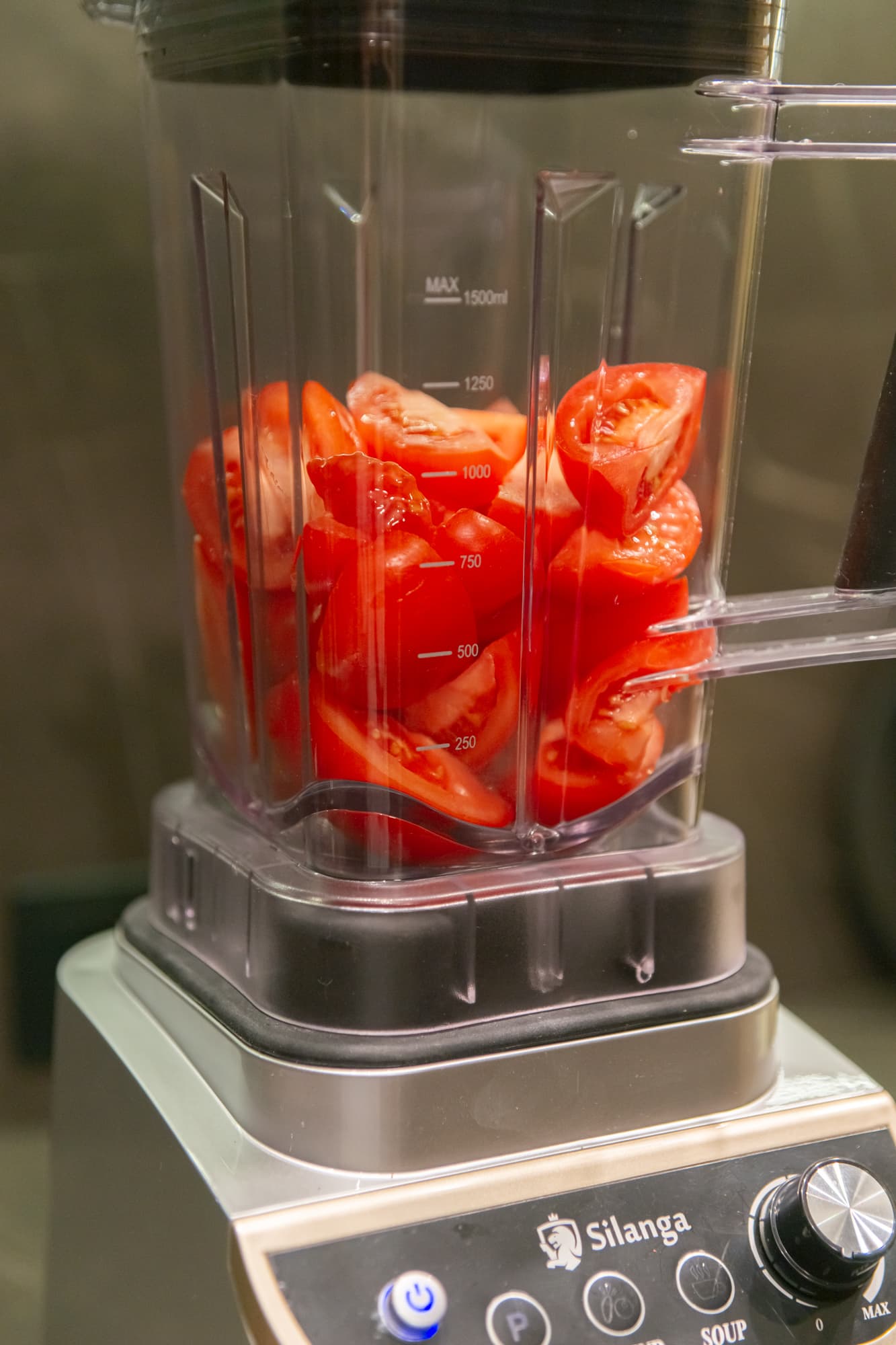 Томаты сорта Сливка в количестве 0,5 кг разрезали на четвертинки и сложили в чашу. Из любопытства врубили сразу 5-ю скорость. На ней блендеру на измельчение томатов потребовалось 35 секунд. Позже мы повторяли этот тест на 3-й скорости и зафиксировали цифру в 40 секунд.