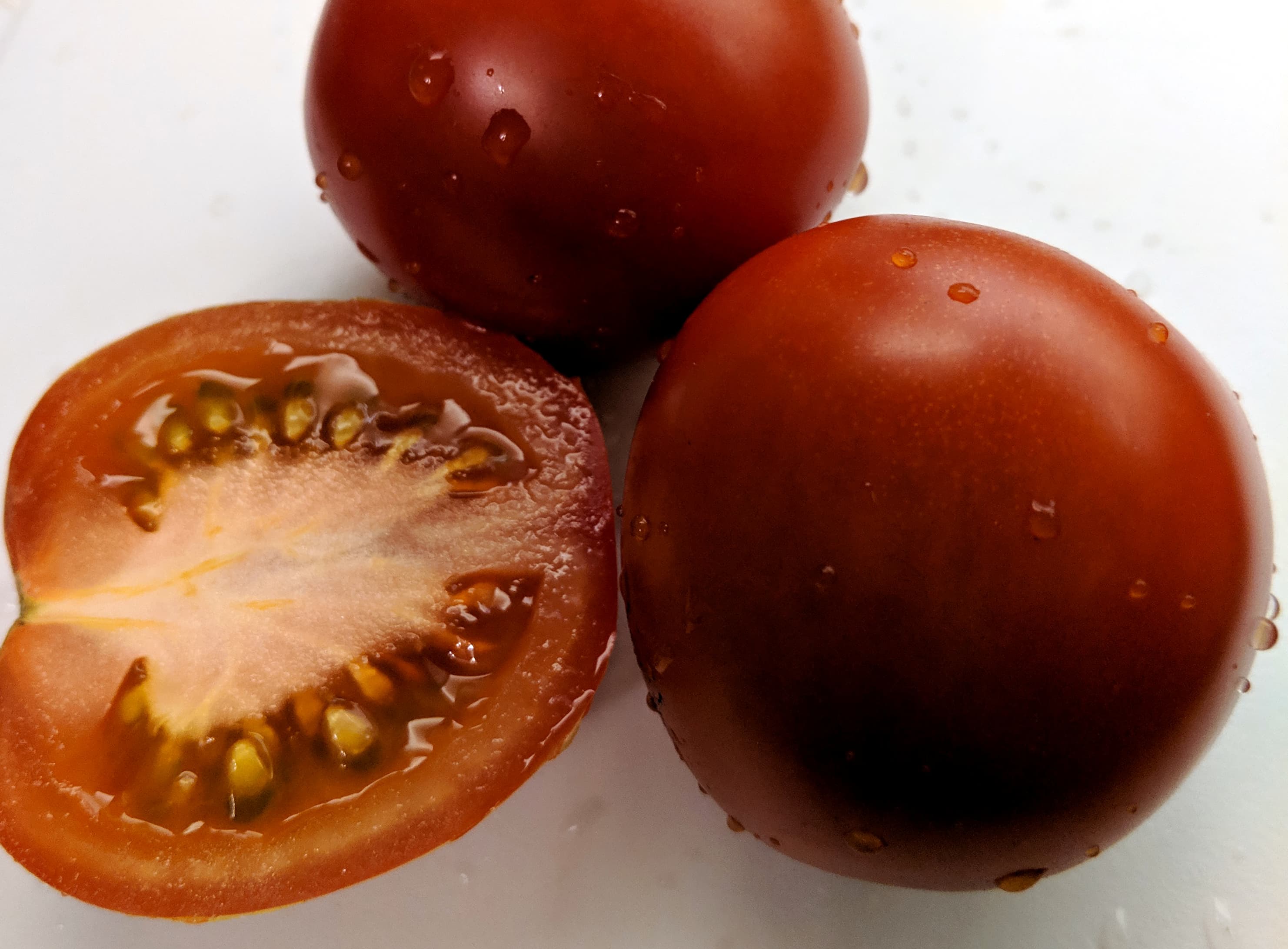 Мы положили в кувшин полкило крепких зимних томатов, нарезанных со свойственной нам небрежностью на восьмушки и четвертинки. Срезали плодоножки и больше никак не очищали. Одна минута по таймеру на третьей скорости — и в кувшине оказалось идеально гомогенное томатное пюре без шкурок.
