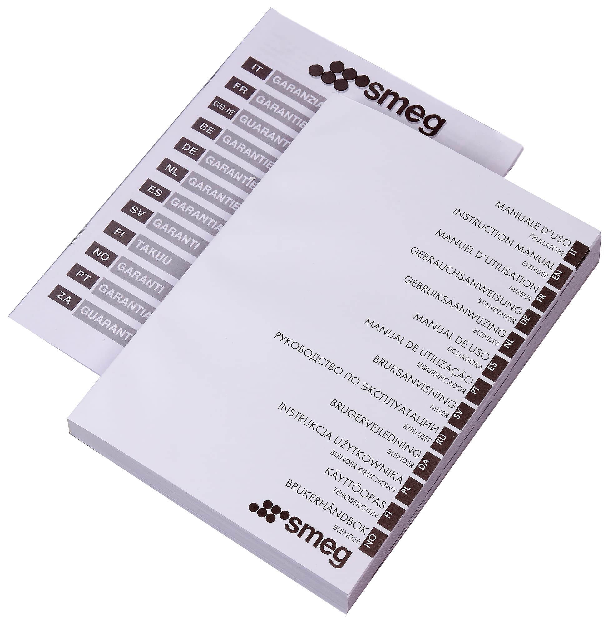 Кроме того, в комплекте есть гарантийная книжка (нет русского языка, имейте в виду) и небольшой буклет, в котором перечислены модели мелкой бытовой техники, которую Smeg делает в серии «стиль 50-х годов». Этот буклет уже цветной и лаковый.