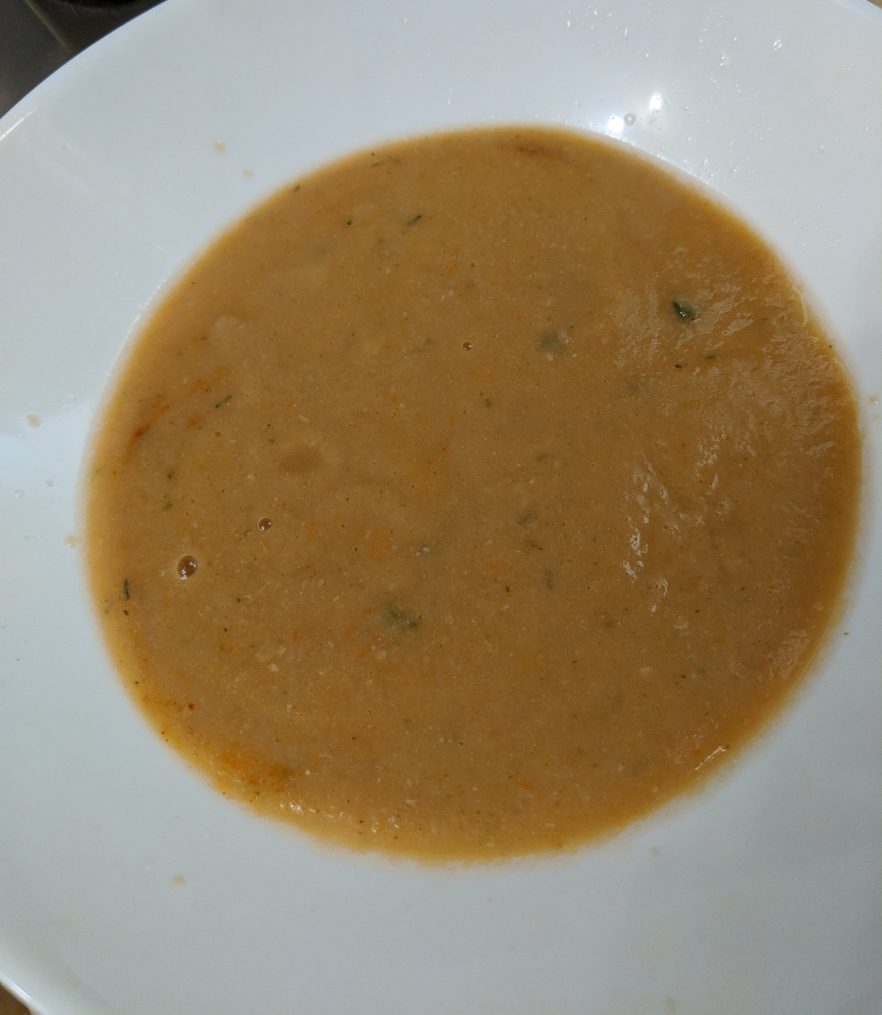 Основная особенность этой программы — плавные переходы от высоких оборотов к низким: чтобы все размолоть и тщательно перемешать. Получается быстро и качественно, однако яблоко можно было нарезать и помельче — или измельчать немного дольше: остались мелкие кусочки.