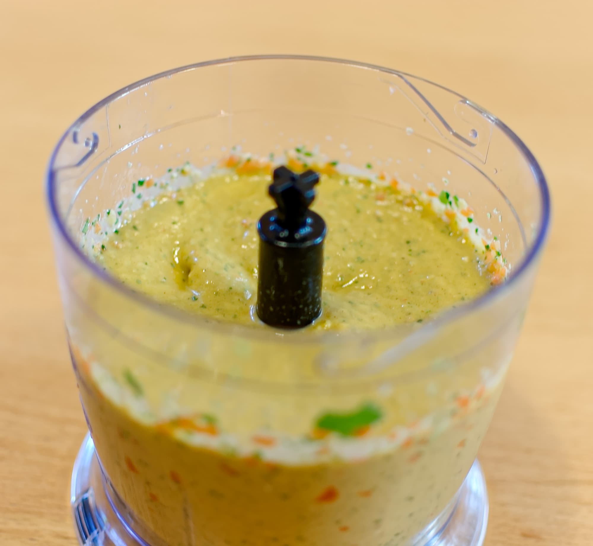 Измельчать недолго, идеальной гомогенности можно не добиваться.
