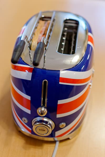 Наш сегодняшний гость явно относится к категории дорогих. Нет, даже не так: очень дорогих. Зато он большой, красивый и раскрашен в цвета британского флага. Это, вообще? забавный вопрос: почему у итальянской компании Smeg в ассортименте имеется 8 однотонных расцветок и только одна «флаговая» — и при этом не итальянская? Как-то, право слово, непатриотично.
