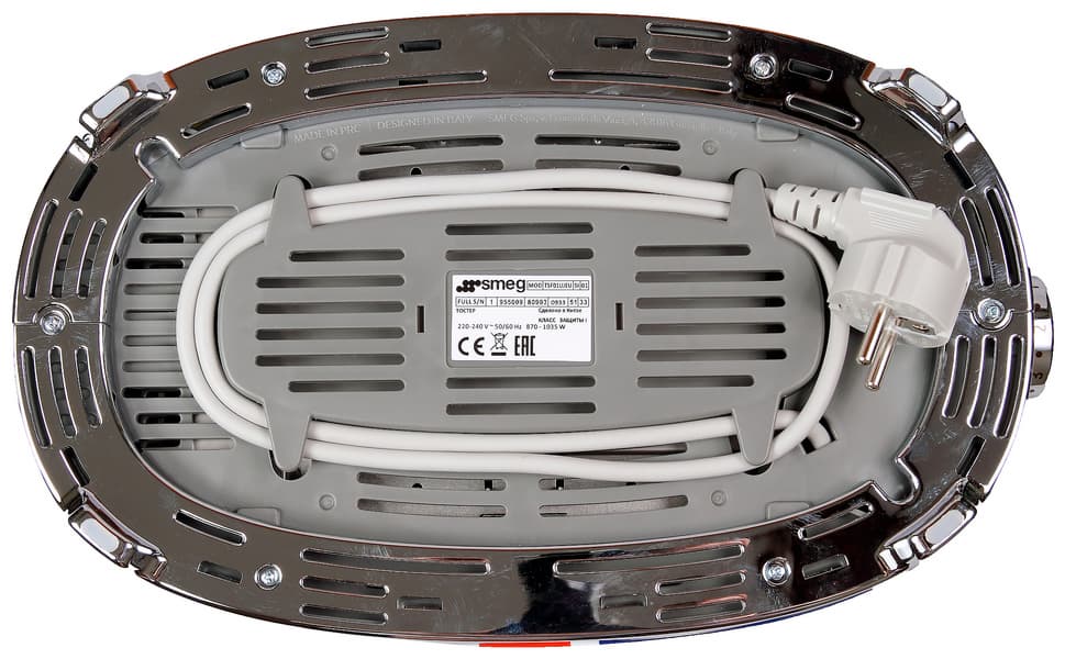 Простое и понятное устройство, в которое можно либо инсталлировать много кусочков хлеба вдоль «ребер», либо положить что-нибудь одно сверху, поперек. Smeg предпочитает фото с круассаном, но мы все-таки в России, так что в наших опытах круассан заменил пирожок с мясом и рисом.