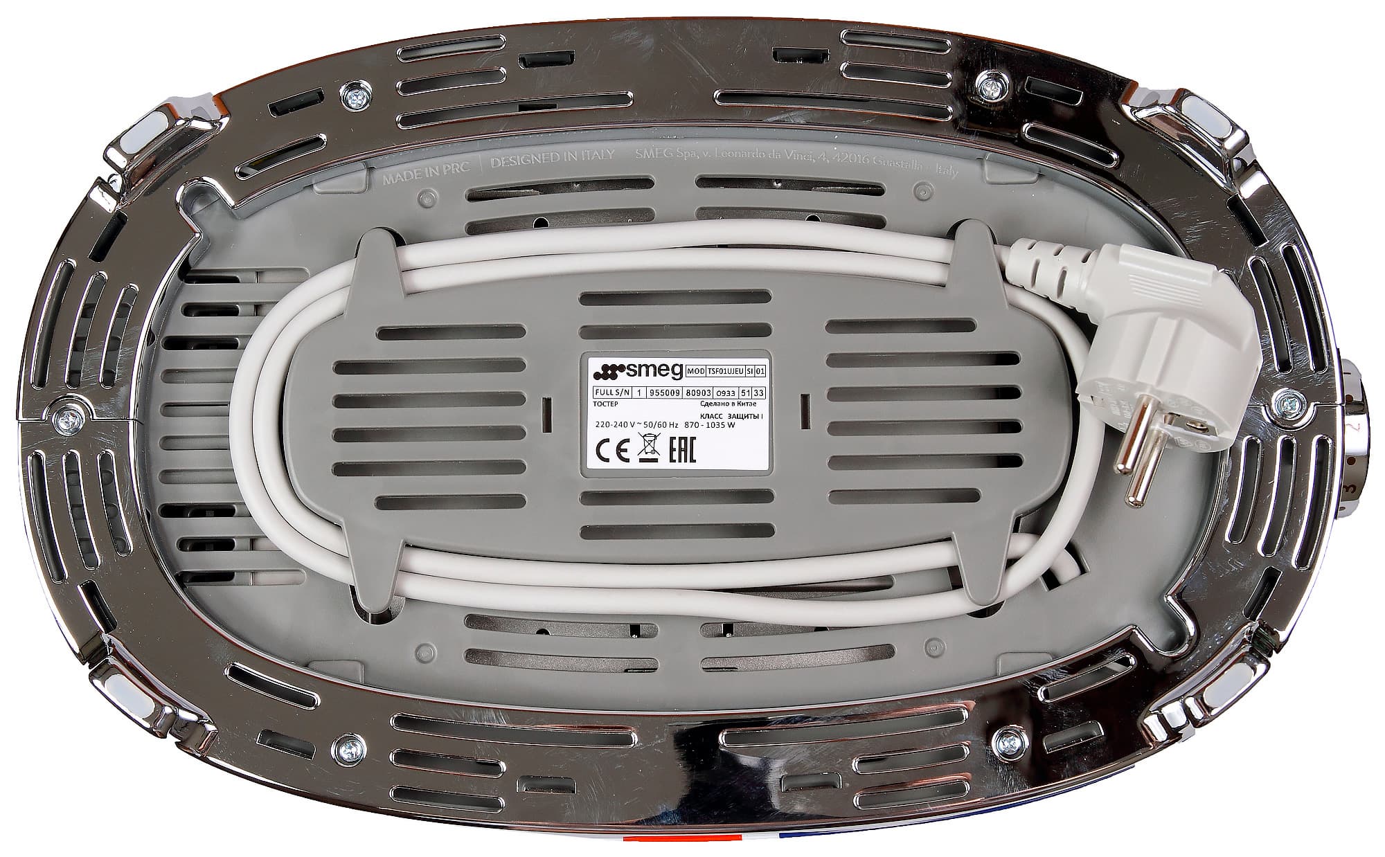 Все четыре ножки снабжены противоскользящими накладками, на специальные направляющие на дне можно намотать излишки сетевого шнура.