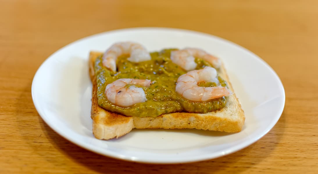 Гуакамоле отлично сочетается с хрустящим тостом и креветками.