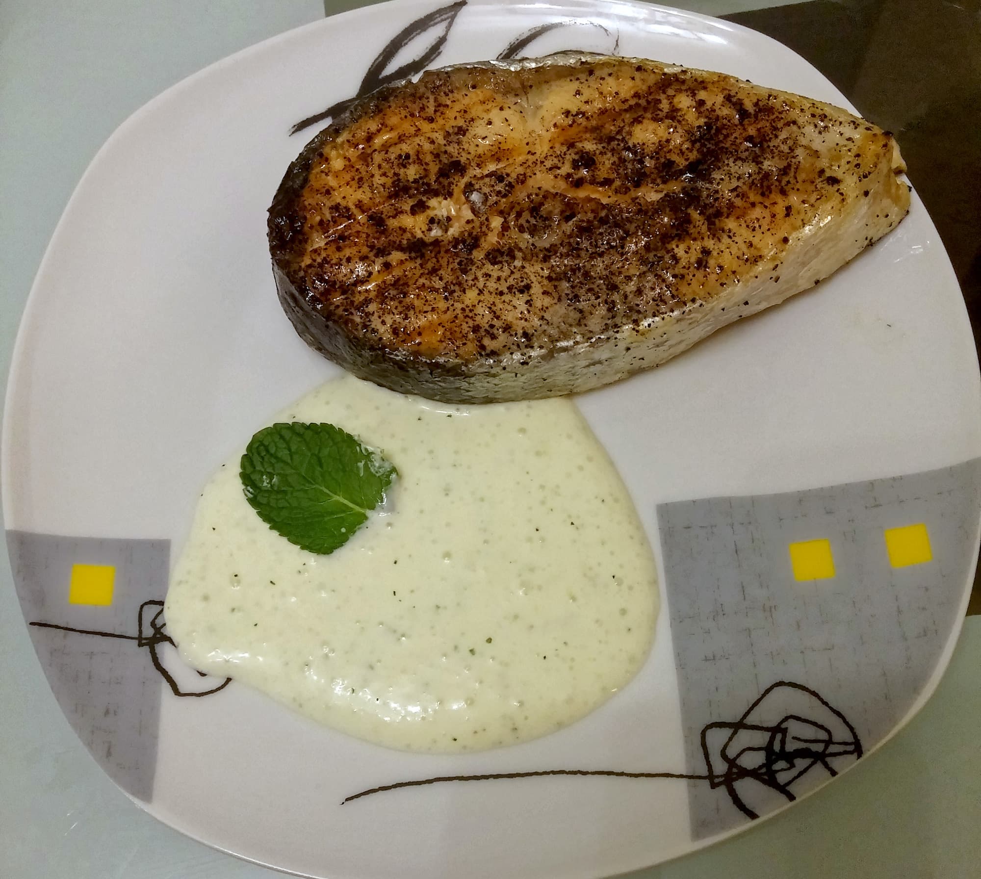 Для стейков мы выбрали крупную форель, посолили и поперчили и выложили на гриль на 6 минут до получения румяных полосок при нежном сочном мясе. За это время мы смешали в блендере вездесущий чеснок с цедрой лайма (здесь он может быть легко заменен на лимон) и сливками, а также каплей оливкового масла, чтобы не утяжелять блюдо. Политые соусом горячие стейки были предсказуемо выше всяких похвал.