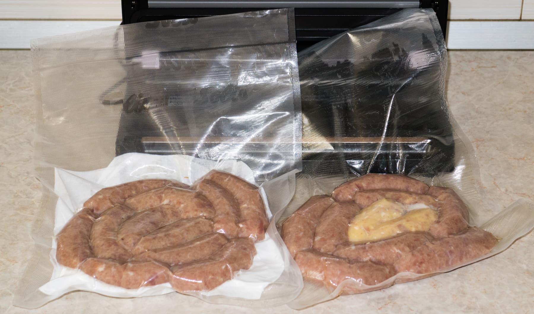 Несмотря на наличие режима вакуумирования влажных продуктов, мы бы все же советовали укладывать мясо, колбасные изделия (домашние колбаски, сосиски), отбивные и рыбу на сухую салфетку или обернуть их бумажным полотенцем, чтобы оно могло впитать выступающую жидкость. Тогда пользователю точно не придется повторно запаивать пакет из-за недостаточно герметичного шва.