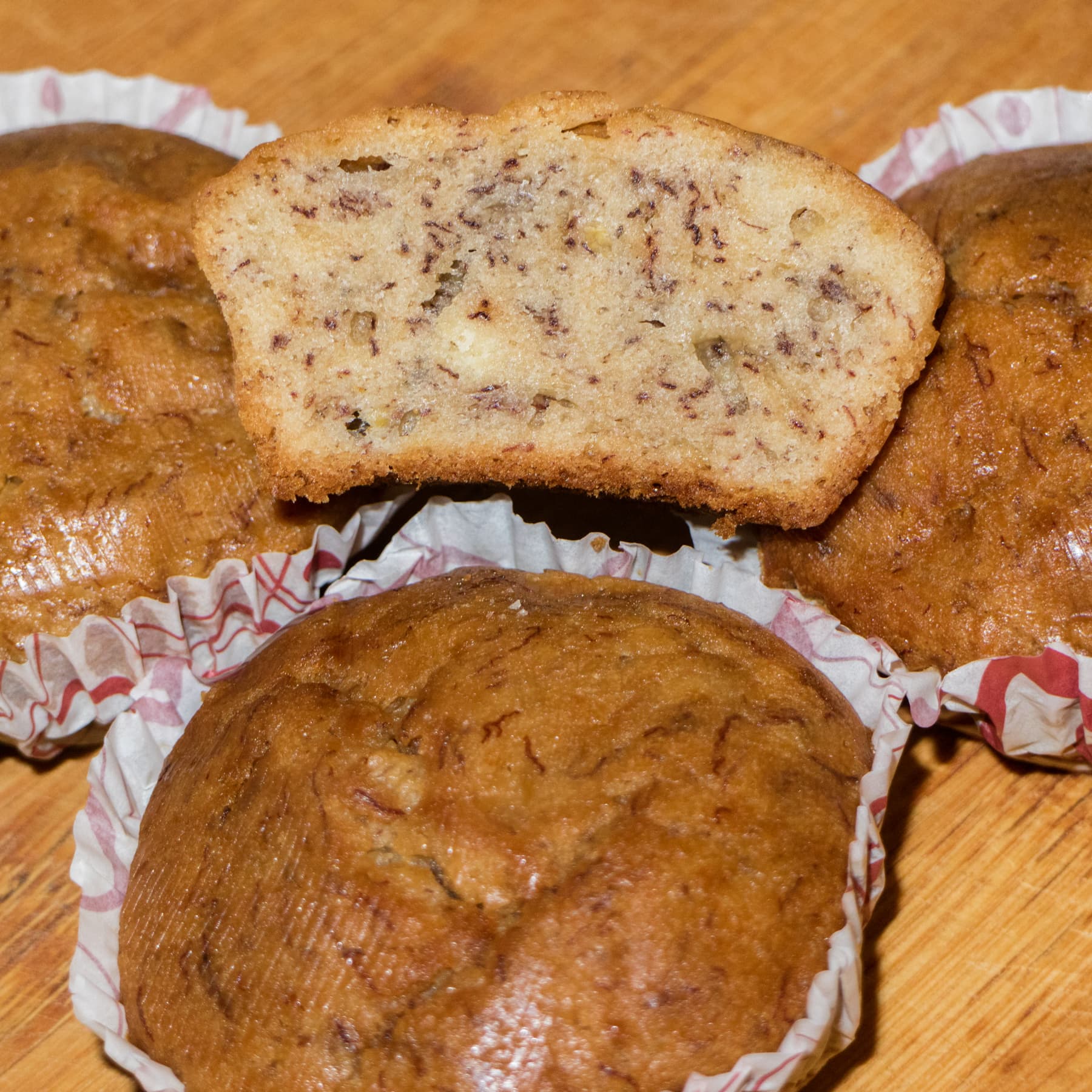 Кексы немного сдавились, воздух, по ощущениям, откачан полностью. Хранились наши плюшки при комнатной температуре ровно 7 дней, т. е. неделю. Без вакуума за это время они бы или высохли, или покрылись плесенью, потому что мякоть кексов довольно влажная. После распаковки кексы остались такими же чуть влажными внутри. К сожалению, они не расправились, наполнившись воздухом, остались немного плотными. Но связываем мы это именно с особенностями выпечки с добавлением банана. Впрочем, на вкусовых качествах данный факт отразился не сильно.