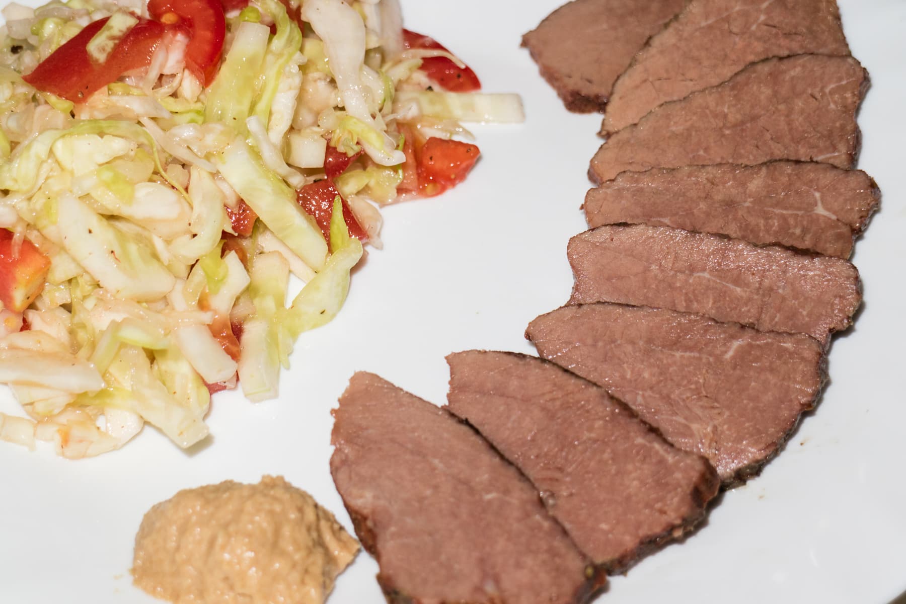 Мало того, что мясо сохранило свою свежесть при хранении в течение 4 дней, вакуумная упаковка еще и позволила нам приготовить его по технологии су-вид, что самым положительным образом сказалось на мягкости и вкусе вареной говядины.
