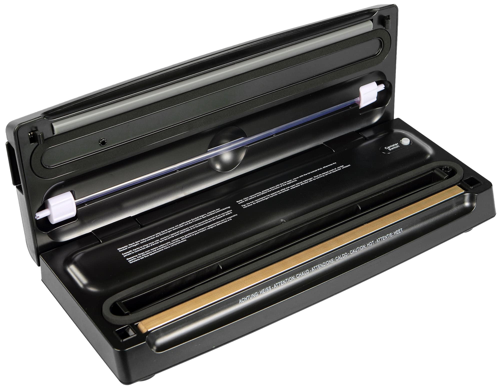 Запаивание пакета осуществляется стандартным для вакууматоров образом. Край пакета следует разместить на запаивающей планке. Край пакета при этом не должен доставать до вакуумной камеры. Затем откидная крышка закрывается до характерного щелчка, после чего нужно нажать на кнопку Seal. Зеленая контрольная лампочка несколько раз мигнет и погаснет, что будет означать окончание процесса запайки. Как только контрольная лампочка погаснет, можно открывать крышку, потянув обе клавиши разблокировки вверх.
