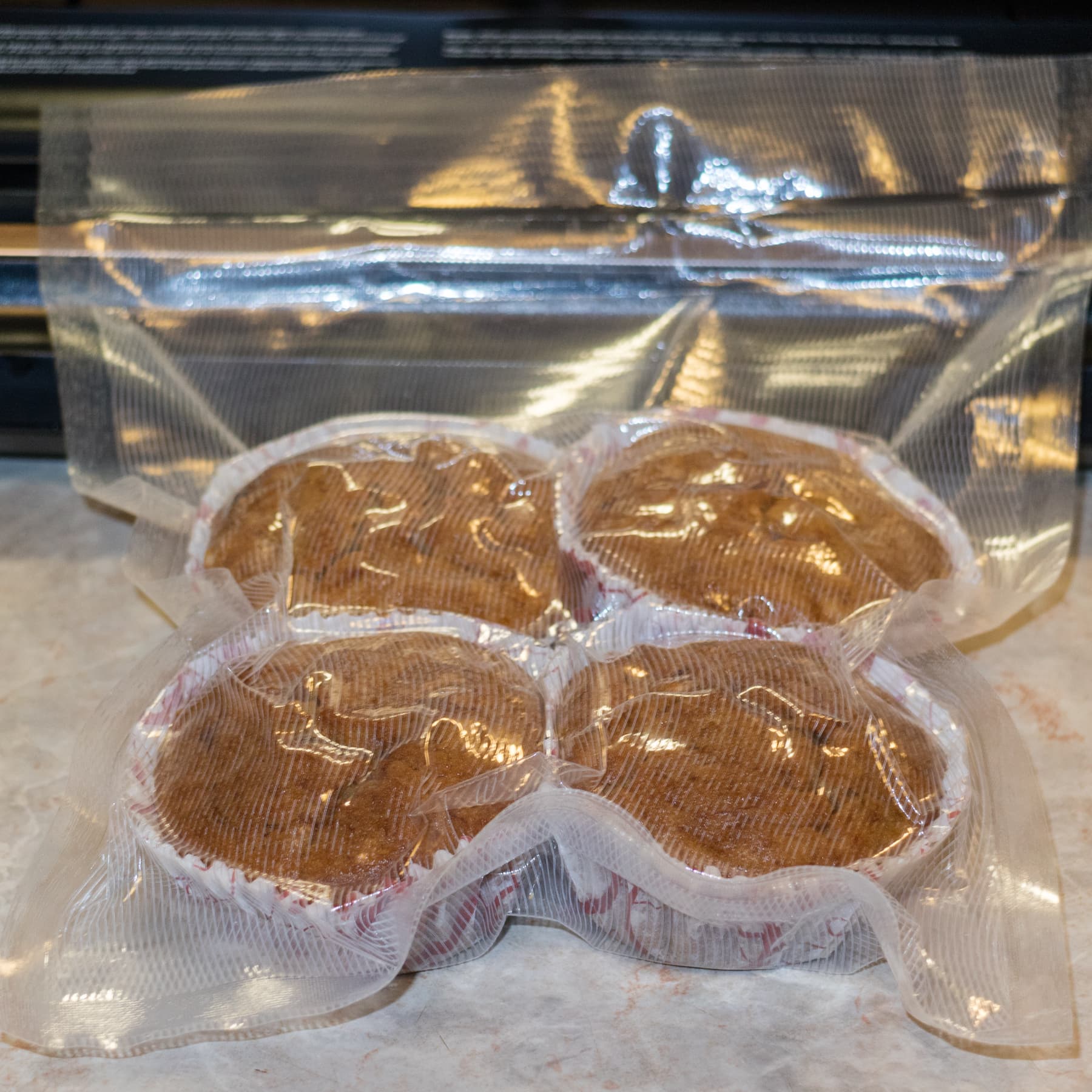Данный тест мы провели с целью оценки двух параметров: возможностей ручного режима вакуумирования и способности вакуумной упаковки по сохранению домашней выпечки. Процесс упаковки вновь прошел без неожиданностей: держали нажатой кнопку Pulse Vacuum до тех пор, пока давление воздуха не начало деформировать кексы. Как только нам показалось, что откачано достаточное количество воздуха, нажали кнопку Seal, тем самым запустив процесс запайки шва.