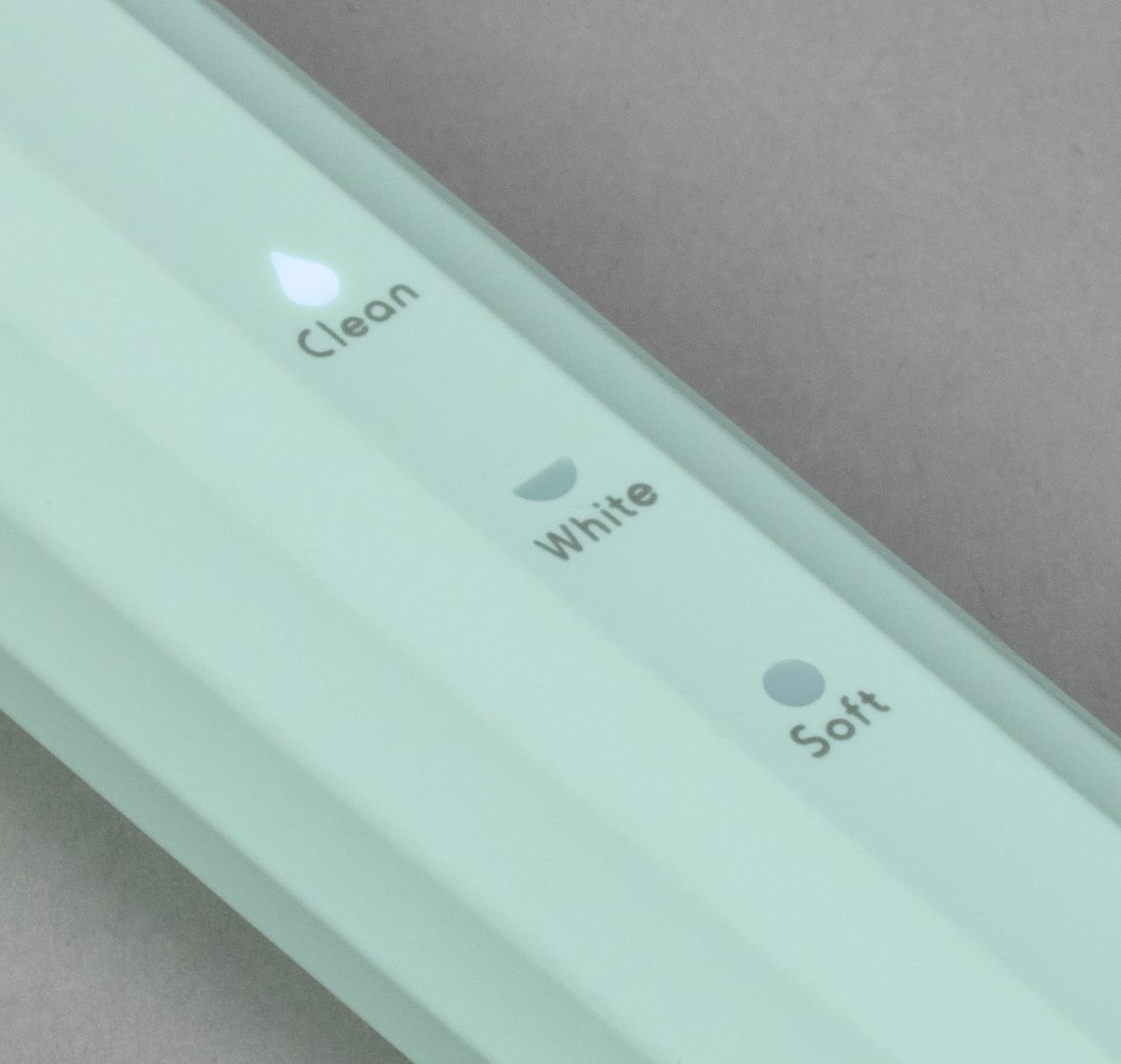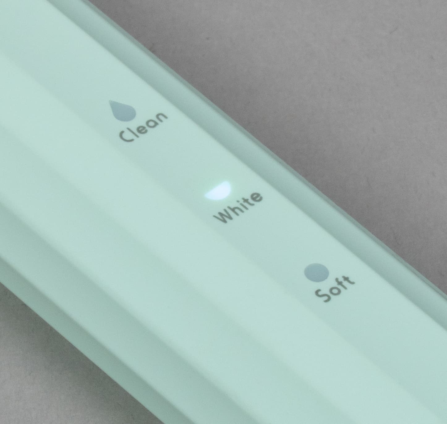 Единственная кнопка на корпусе включает зубную щетку. Последующие нажатия переключают режимы работы. Их у нашего прибора три: