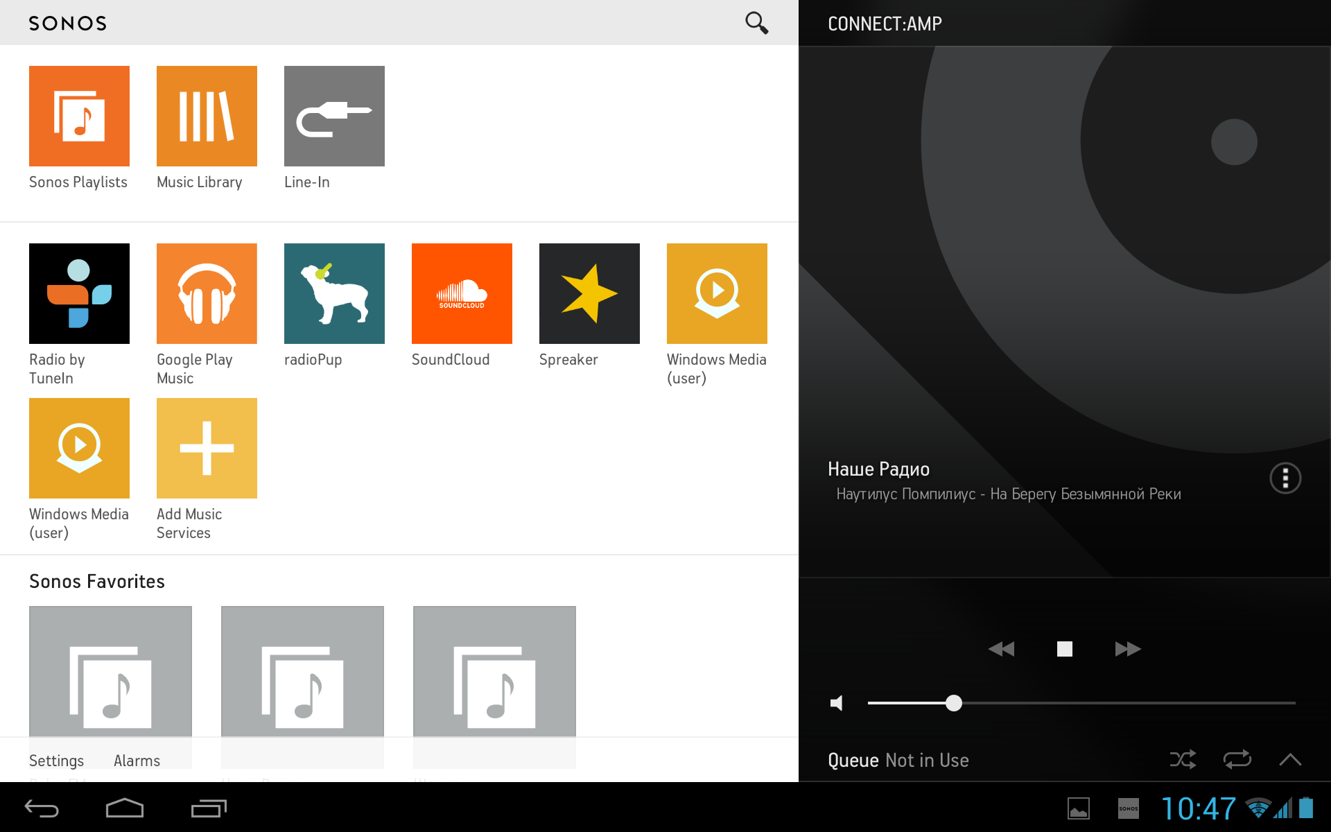 По умолчанию в системе присутствует популярный каталог интернет-радиостанций TuneIn. Отметим, что пользователь имеет возможность добавлять в него свои станции, указывая название и ссылку на трансляцию аудиопотока. В самой программе указан немного отличающийся от информации на сайте список сервисов, который, видимо, отфильтрован по доступности (в частности, отсутствуют неработающие у нас Pandora и Spotify). Подавляющее большинство из них требуют регистрации и создания аккаунта, а многие — и абонентской платы. Среди наиболее известных упомянем Google Play Music, Last.fm и SoundCloud. В разделе Sonos Labs можно найти еще несколько сервисов, поддержка которых имеет статус «беты».
