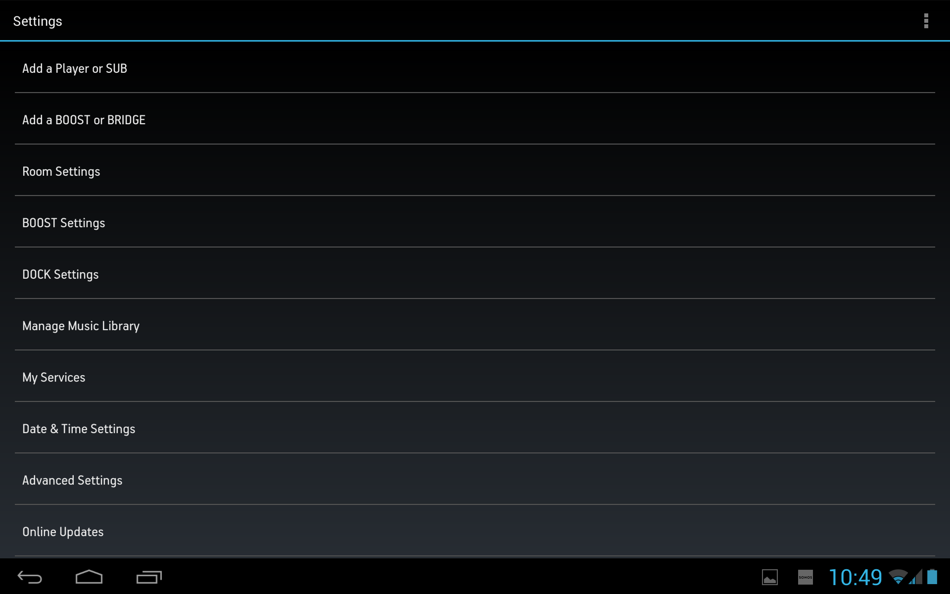 Так что описываемые ниже относятся скорее не к программе, а к конкретному устройству. В частности пользователь может изменить его название, отключить световой индикатор, настроить двухполосный эквалайзер и баланс, изменить язык, подключить устройство к беспроводной сети, настроить часы. Подключение к линейному входу плеера имеет несколько опций, в том числе изменение названия и выбор уровня входного сигнала.