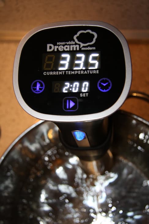 У некоторых су-видов также присутствует возможность установить таймер отсрочки старта. Такая функция может пригодиться в случае, если вы хотите получить готовое блюдо к определенному часу. На наш взгляд, подобная функциональность является несколько избыточной: поместить продукты на несколько часов в воду комнатной температуры — не лучшая идея с точки зрения пищевой безопасности. Однако на англоязычных форумах можно встретить людей, которых эта проблема не останавливает: некоторые пользователи с утра закладывают в емкость продукты вместе со льдом и устанавливают отсрочку старта, чтобы получить готовый стейк к моменту возвращения с работы.