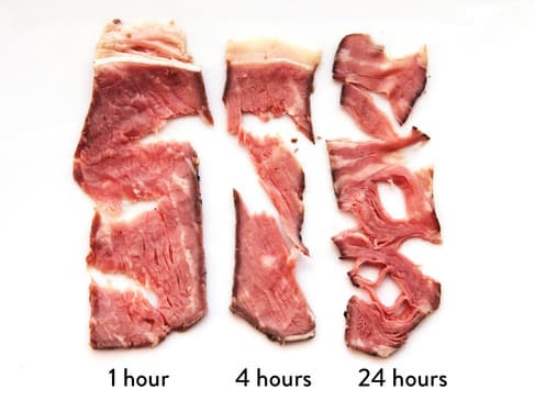 А вот так изменяется структура мяса в зависимости от времени приготовления (фото — Serious Eats).