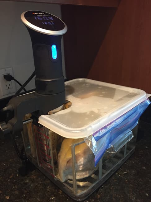 Наконец, нужно упомянуть о возможности дистанционного управления. Некоторые су-виды (в частности, этим славятся приборы, выпущенные под брендом Anova) имеют встроенные модули Bluetooth или Bluetooth + Wi-Fi. Для связи с прибором используется специальное приложение для Android или iOS. Таким образом, пользователь получает полный контроль над устройством со своего смартфона. Тут можно найти и функцию контроля за температурой, и возможность дистанционного запуска/остановки процесса приготовления, и прочие возможности. Приложение также содержит коллекцию рецептов, позволяющих начать приготовление выбранного блюда «в одно нажатие» — прибор автоматически установит нужную температуру и время приготовления в зависимости от выбранного рецепта.