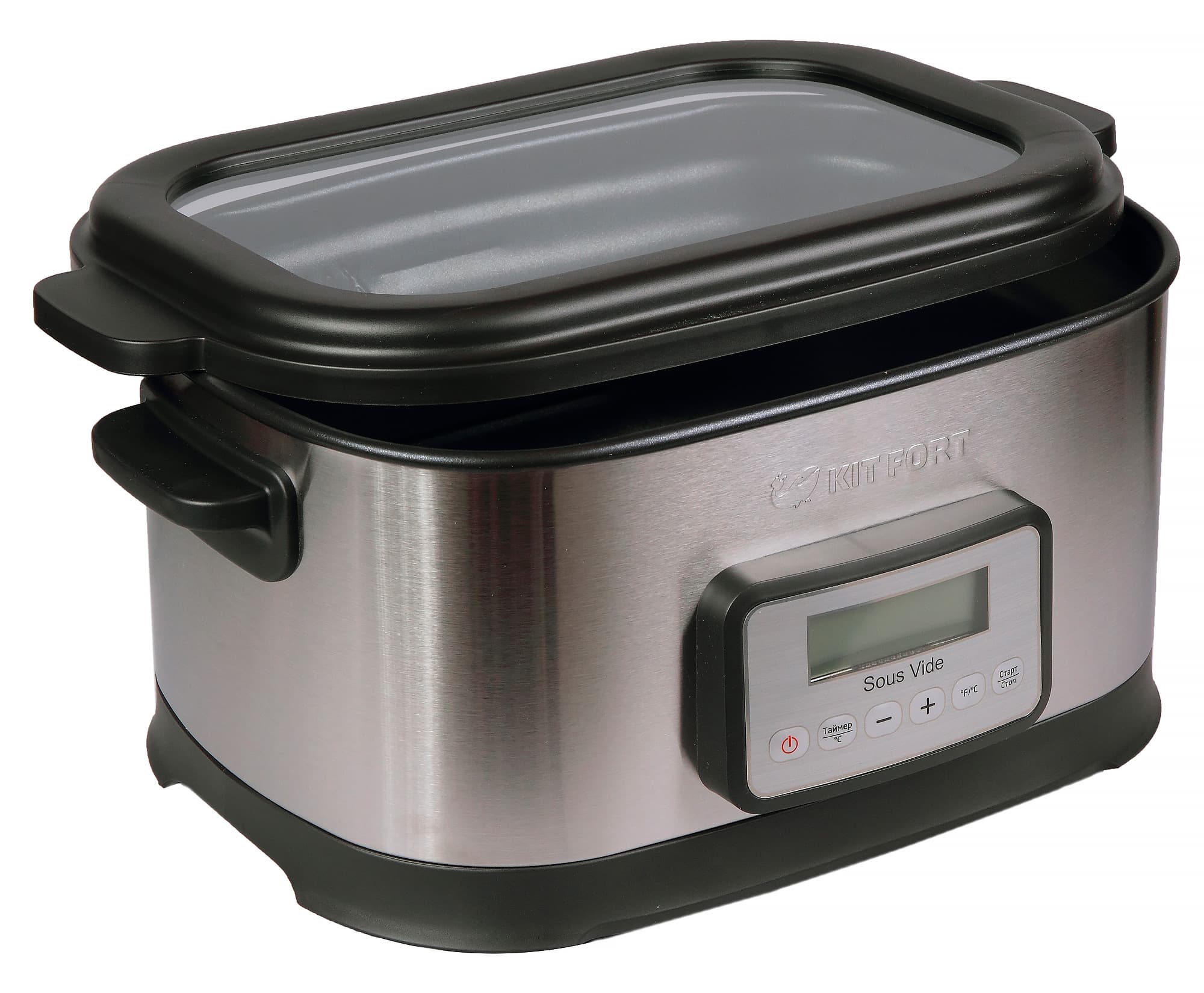 Kitfort KT-2021 — один из первых недорогих стационарных су-видов, представленных на отечественном рынке. Конструкция прибора стандартна: емкость с чашей и панелью управления и стеклянная крышка — вот и все его составляющие. Чаша у прибора несъемная, интегрирована в корпус. Размеры впечатляют — 8,4 литра. Полезные размеры колеблются от 2,1 до 6 литров.