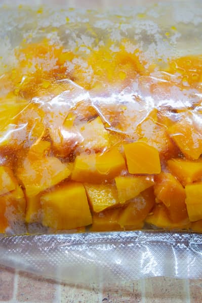 В режиме Air Sous Vide с нагревом до 85 °C тыква дошла до состояния, когда ее можно размять вилкой, уже через час, свекле до полной готовности понадобилось три часа.