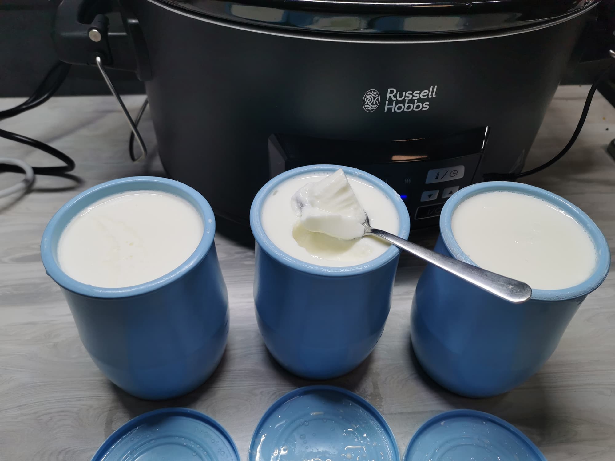 За 6-8 часов при 40 °C и после нескольких часов остывания мы получаем густой, вкусный и натуральный йогурт.