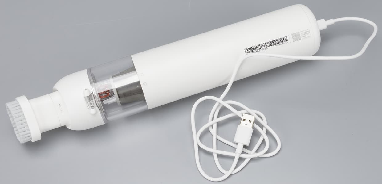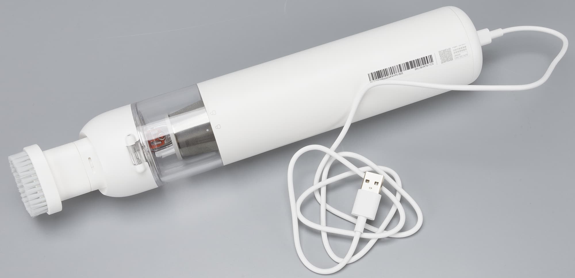 От крупногабаритной модели перейдем к миниатюрной — можно использовать ее дома и быстро пройтись по мягкой мебели, технике и щелям, можно пропылесосить сиденья, коврики и аппаратуру в автомобиле. Пылесос работает 30 минут в стандартном режиме и 9 минут в режиме «турбо» (есть световой индикатор уровня заряда), заряжается 140 минут (согласно нашим измерениям против заявленных 90 минут), имеет пылесборник объемом 100 мл, в комплекте идут щетка, щелевая насадка-удлинитель и кабель USB Type-C, но без блока питания.