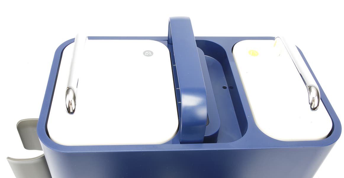 Конструкция предусматривает 2 контейнера для воды — чистой и грязной, каждый имеет свою ручку: устанавливать и вынимать их очень удобно. Сам пылесос тоже удобно переносить за ручку.