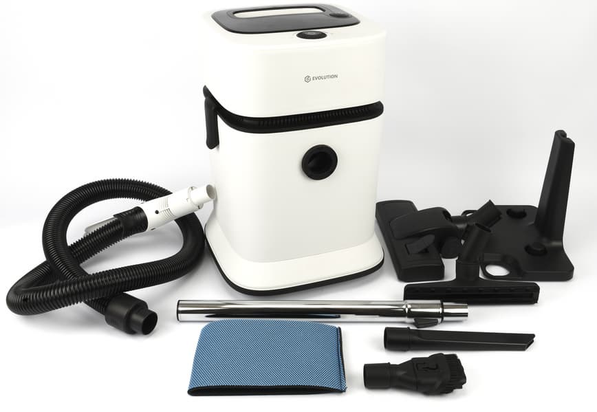 Необычный — мы же привыкли к вертикальному формату — моющий пылесос предназначен для тщательной очистки мягкой мебели, ковровых покрытий и салона автомобиля от самых стойких загрязнений. Модель имеет мощность 2000 Вт, обеспечивает мощность всасывания до 211 аВт и проводит низкотемпературную чистку, высокотемпературная чистку, чистку паром, стерилизацию паром, сушит вымытые поверхности горячим воздухом и проводит самоочистку — таковы режимы работы прибора. О ходе работы и неполадках оповещает голосовой помощник.