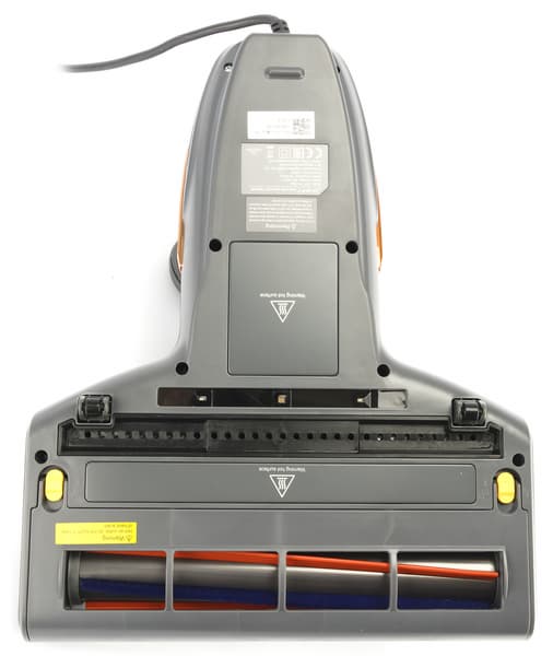Мы оценили некоторые плюсы конструкции: моторный блок крепится к основанию-контейнеру для мусора двумя массивными фиксаторами-защелками Pull & Push, что позволяет легко и быстро разобрать и собрать пылесос. В отличие от многих подобных пылесосов, провод здесь прячется внутрь корпуса — для автоматического сматывания шнура надо нажать соответствующую кнопку, а трубка не сочлененная из двух частей, а качественная телескопическая из полированной стали, раздвигающаяся от 49 до 81 см.