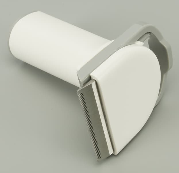 Есть и насадка-триммер с регулируемыми гребнями от 3 до 24 мм. Здесь результаты оказались неоднозначными: при стрижке густой и длинной шерсти приходилось несколько раз проходить по одной зоне, а итоговый результат не всегда получался ровным. Тем не менее вся состриженная шерсть также попадала внутрь контейнера, и это оказалось удобнее, чем обычная стрижка с последующей уборкой.