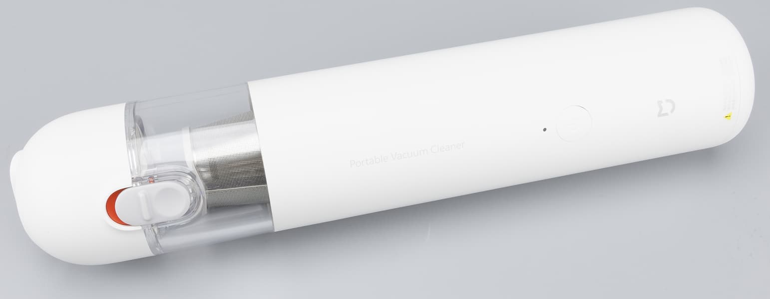 Весит этот малыш без насадок всего 470 г и имеет габариты 26,7×5,5×5,5 см, не больше сложенного зонтика-автомата. Пылесос приятный на ощупь, легкий и компактный, держать в руке его удобно и приятно. Все детали продуманы и сборка безупречна: все подогнано, ничего не люфтит, все открывается, снимается, надевается, нажимается без проблем. Есть подсказки для пользователя: например, на внешнем сетчатом фильтре маркировка подсказывает направление движений при его сборке — минимум движений и усилий. Пылесос включается, выключается, переключается из режима в режим (их два) единственной кнопкой.