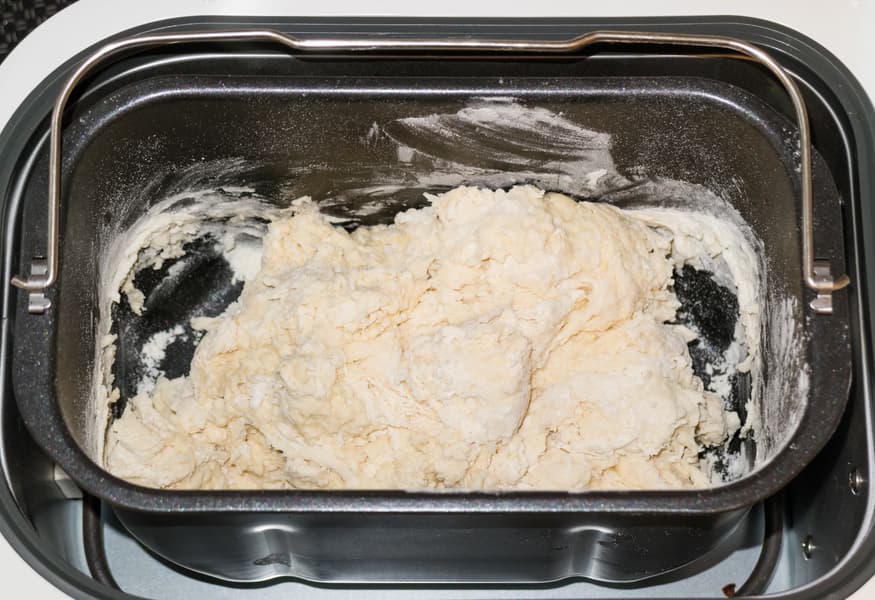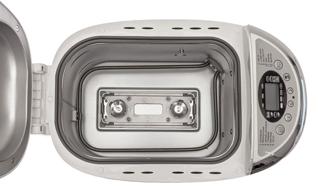 Перед закладкой ингредиентов рекомендуется смазать форму маргарином или маслом. Затем вставить ее в прибор и надеть на оси месильные лопасти.