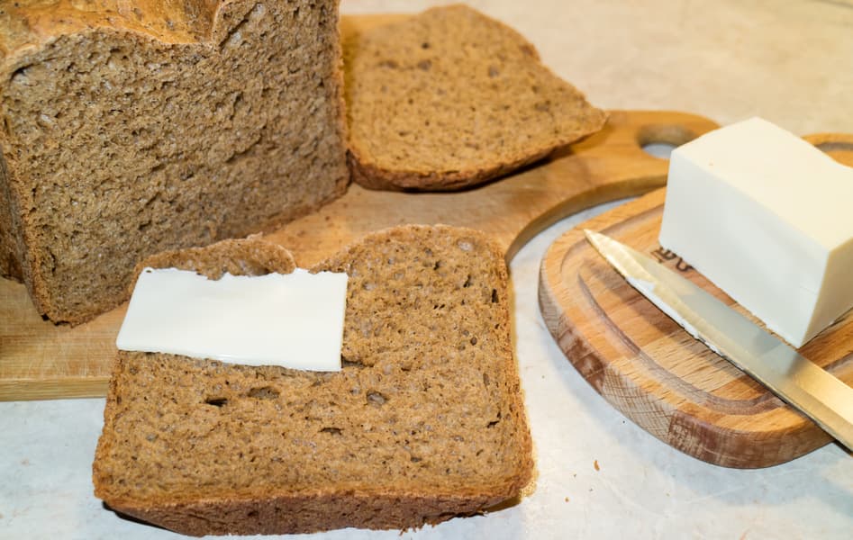 Молоко — 150 мл, вода — 120 мл, масло — 2 ст. л., соль — 1 ч. л., сахар — 2 ст. л., мука пшеничная — 2 ст., мука ржаная — 1 ст., солод сухой — 2 ст. л., дрожжи живые — ¼ пачки, рассчитанной на 2 кг муки.