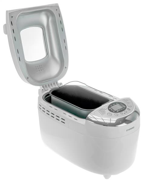 Хлебопечь Starwind SBMM1224 проявила себя как качественно изготовленный, собранный, простой в эксплуатации и уходе прибор. Аппарат оснащен двухлопастной чашей, предназначенной для выпечки хлеба весом от 0,75 до 1,25 кг. От тестирования у нас остались самые благоприятные впечатления. Печь отлично справляется со своей основной задачей — замесом и выпечкой разных видов хлеба. Мякиш получается пропеченным, средне-, мелко- или крупнопористым в зависимости от вида хлеба, корочка равномерно поджарена. Особо отметим прекрасный вид верхушки — ни в одном из тестов она не опала, не была бледной или непропеченной. Кроме того, прибор можно использовать для замеса теста, выпечки без замеса и варки варенья.