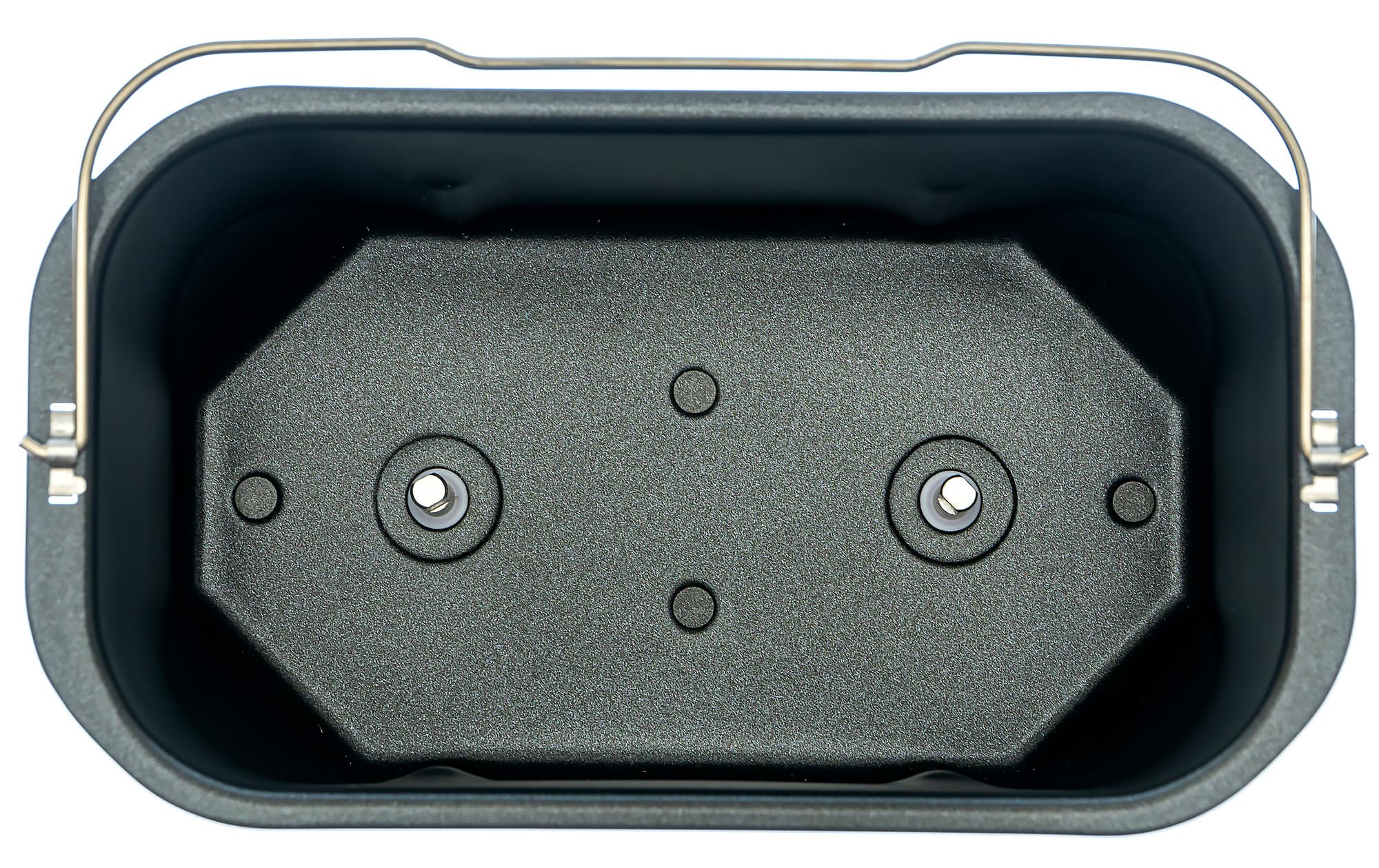 Металл стенок пекарной камеры хорошо обработан, имеет гладкую ровную поверхность. По периметру дна на высоте трех сантиметров расположен нагревательный элемент. Форма для выпечки фиксируется в камере при помощи двух боковых защелок, никаких байонетных замков в данном случае нет.