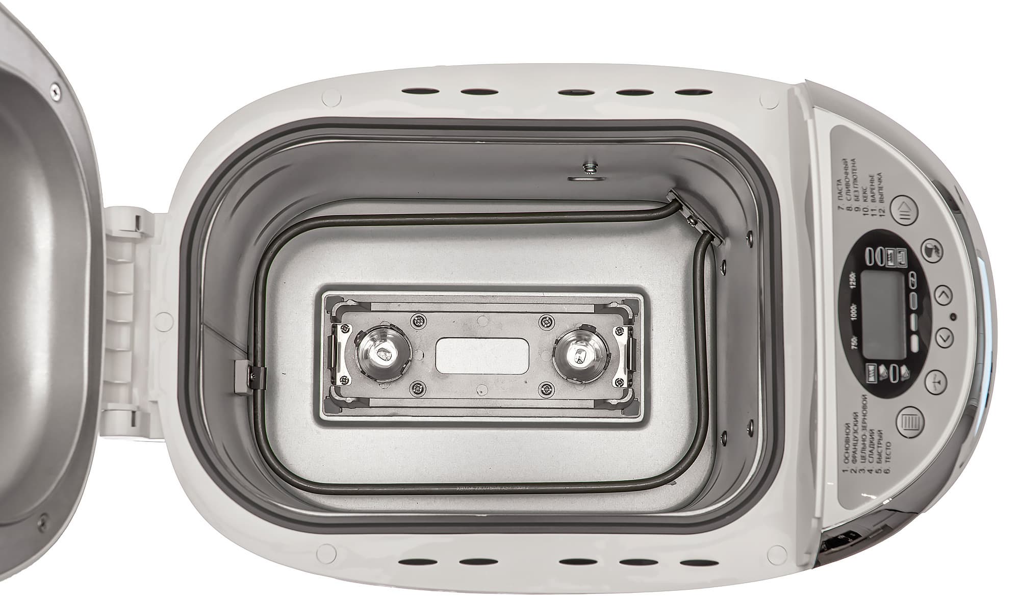 Сквозь смотровое окошко можно наблюдать за процессом, не открывая крышку прибора и не нарушая тем самым микроклимат в рабочей камере. Более того, окошко не запотевает ни на одном из этапов работы. Мы крышку периодически открывали — во-первых, для фотографирования, во-вторых, очень уж любопытно происходящее. В последних тестах, познакомившись с прибором поближе, мы вообще извлекали лопасти после второго обминания теста, перед финальной расстойкой — тогда буханка получалась без некрасивых и неудобных в нарезке следов мешалки.
