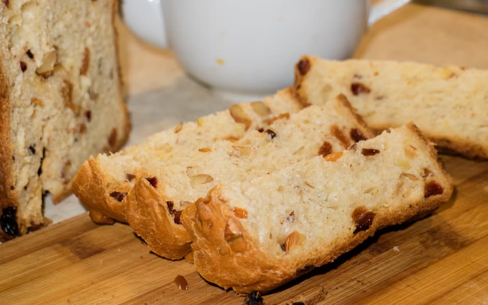 Мякоть мягкая, упругая, приятно пахнет сухофруктами и ванилью. Если часть молока заменить яйцами, то получится отличный кулич, а так изделие больше похоже именно на сладкий хлеб или булочку.