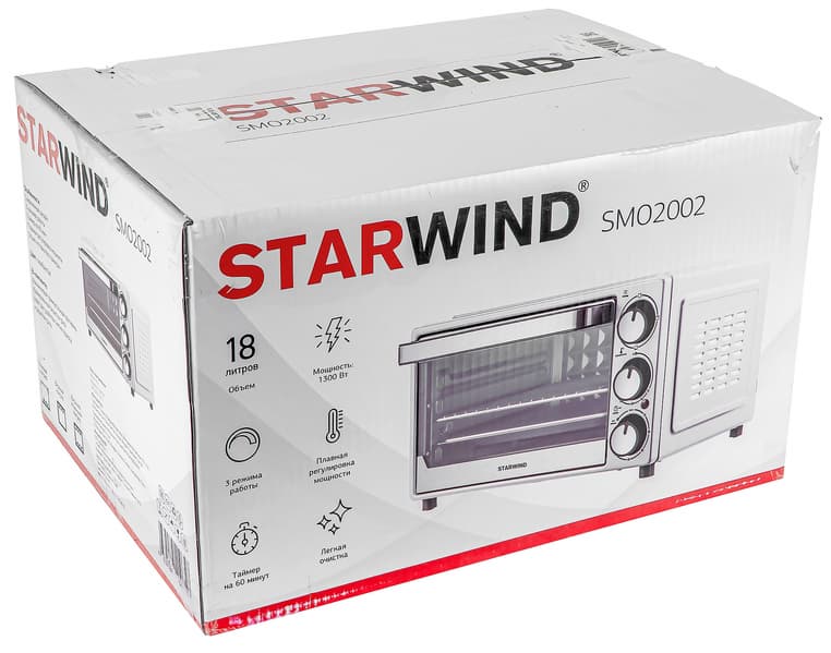 Если вы хотите всегда иметь к чаю свежайшую булочку или круассан, берите Starwind SMO2002, эта печь обеспечит вас выпечкой, разогреет пиццу, сделает сэндвич или печеную курицу.