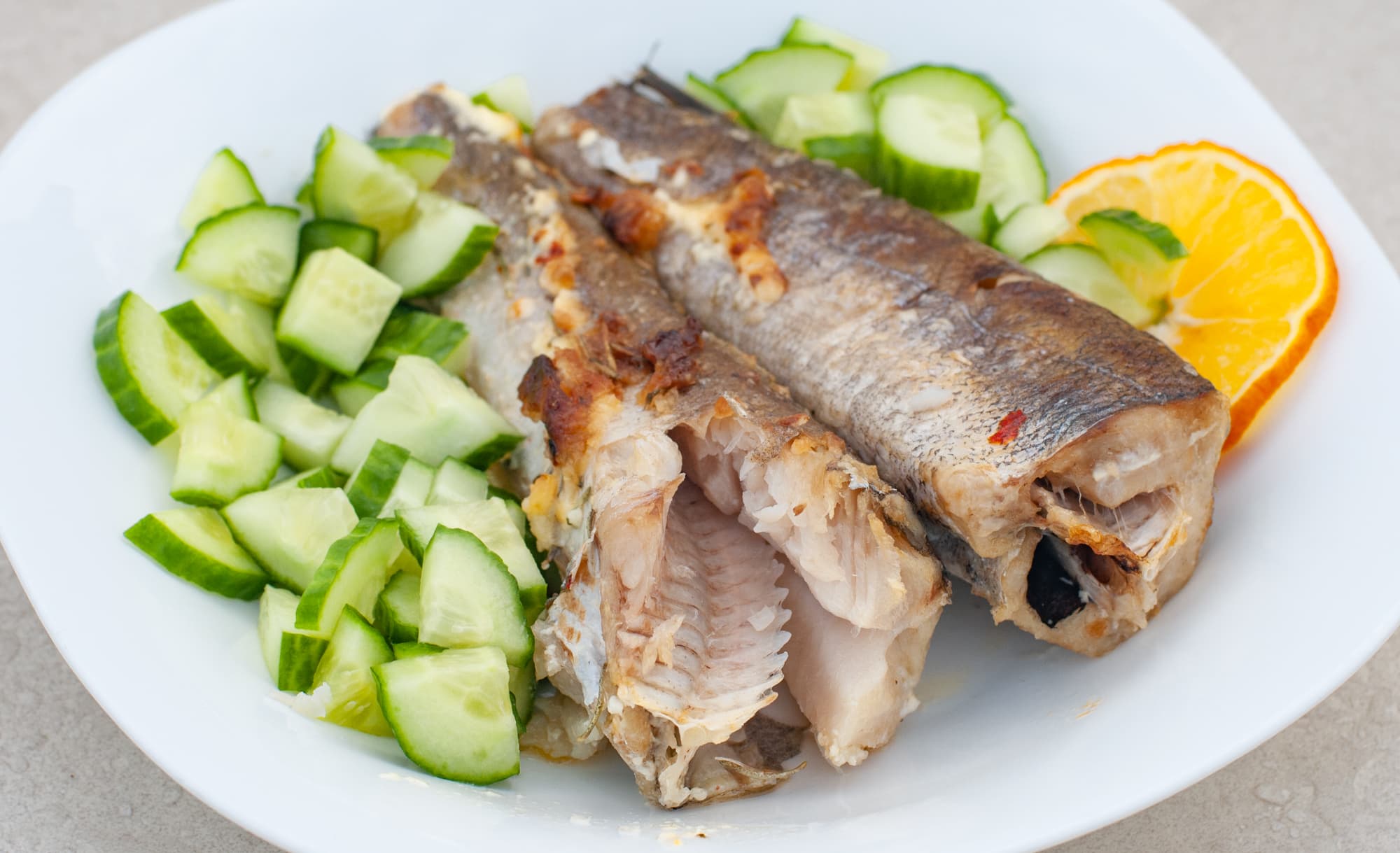 Мы взяли тушки замороженного хека. Разморозили, натерли солью, специями, сбрызнули лимоном. Выложили на противень, обернутый фольгой. Сверху смазали майонезом, снизу положили немного масла, посыпали специями. Выставили среднюю температуру, нижний нагрев.