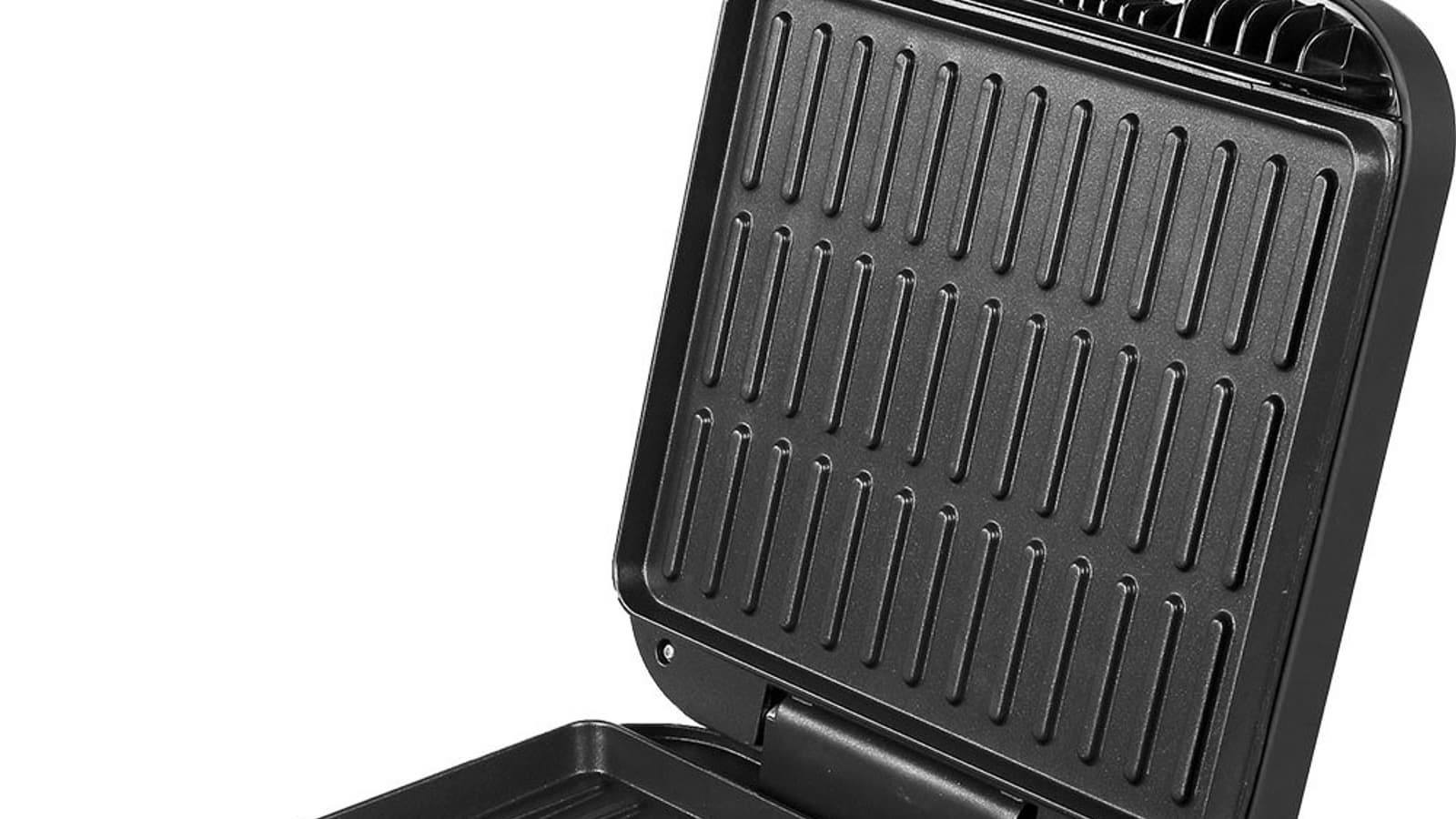 Верхняя панель нагревает продукты сильнее, чем нижняя, и когда мы жарили на гриле котлеты (да, так тоже можно), мы открыли крышку, чтобы они прожарились внутри и не подгорели сверху. Таким образом, гриль потенциально может поработать сковородой.