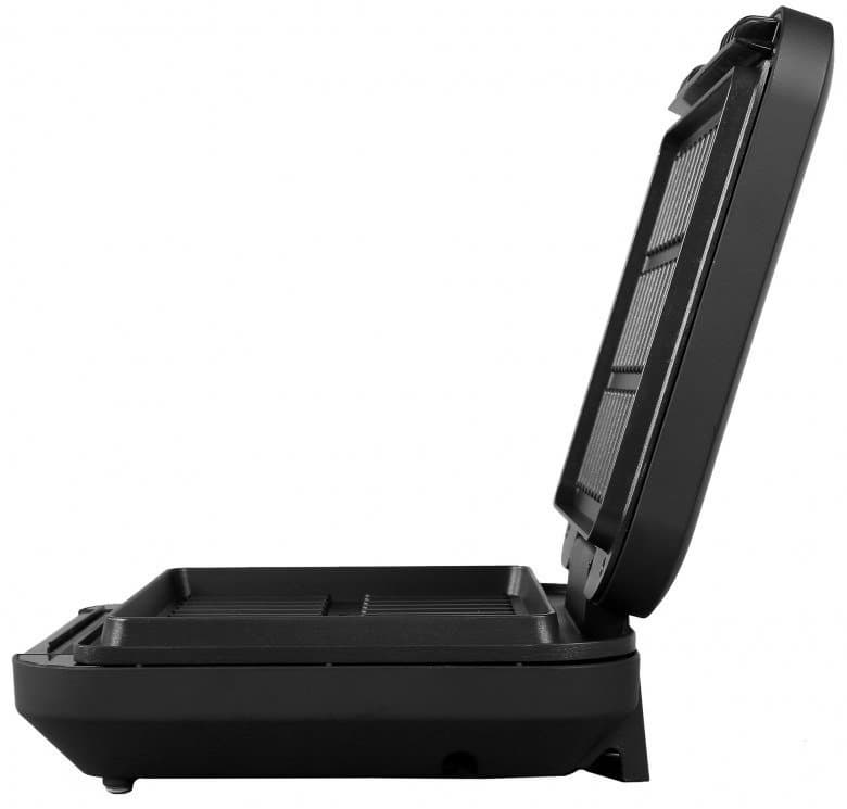 Управление прибором практически отсутствует, и наш опыт говорит в пользу такого решения: чаще всего на грилях выставляют максимальную температуру, либо бюджетные модели нечетко выдерживают разницу между обещанными температурами. Данная модель требует лишь присутствия повара, дабы следить за временем и вовремя снимать продукты с гриля. Во время тестирования мы жарили мясо, рыбу, овощи, подрумянивали тосты с сыром — и лишь один раз пожелали отрегулировать температуру.
