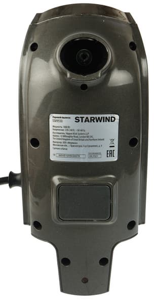 Как и большинство подобных приборов, Starwind SSV9550 не оборудован системой сматывания шнура. Для хранения провода предназначены два поворотных крюка: верхний на ручке и нижний — на корпусе моторного блока. На этих же крюках удобно держать излишек при уборке. Для фиксации кончика шнура со штепсельной вилкой предназначен дополнительный крючок над верхним большим.