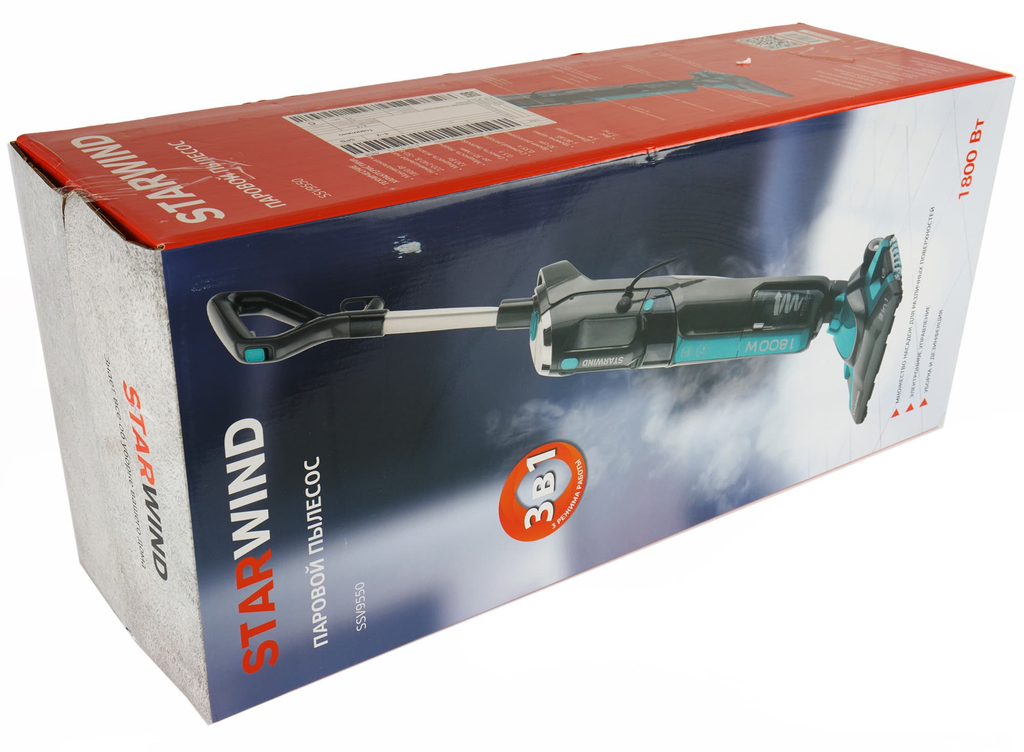 Несомненным достоинством Starwind SSV9550 можно считать съемный блок парогенератора, предназначенный для ручной уборки: с его помощью можно легко очистить стойкие загрязнения с кафеля, кухонной плиты или вытяжки. К сожалению, в комплекте этой модели маловато аксессуаров для такого применения — наличие гибкой трубки и насадок для отпаривания одежды и мытья стекол существенно расширили бы возможности устройства.