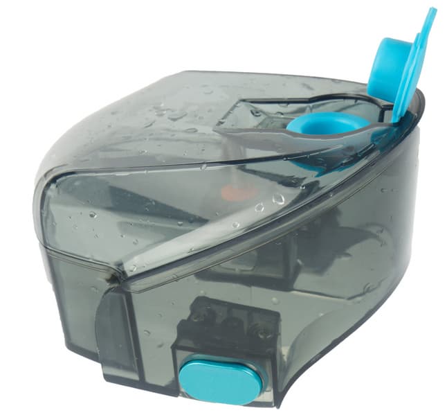 Внутри емкости находится поплавок на гибкой ножке — датчик-индикатор наличия жидкости: при приближении уровня воды к критическому он начинает ритмично постукивать по корпусу.