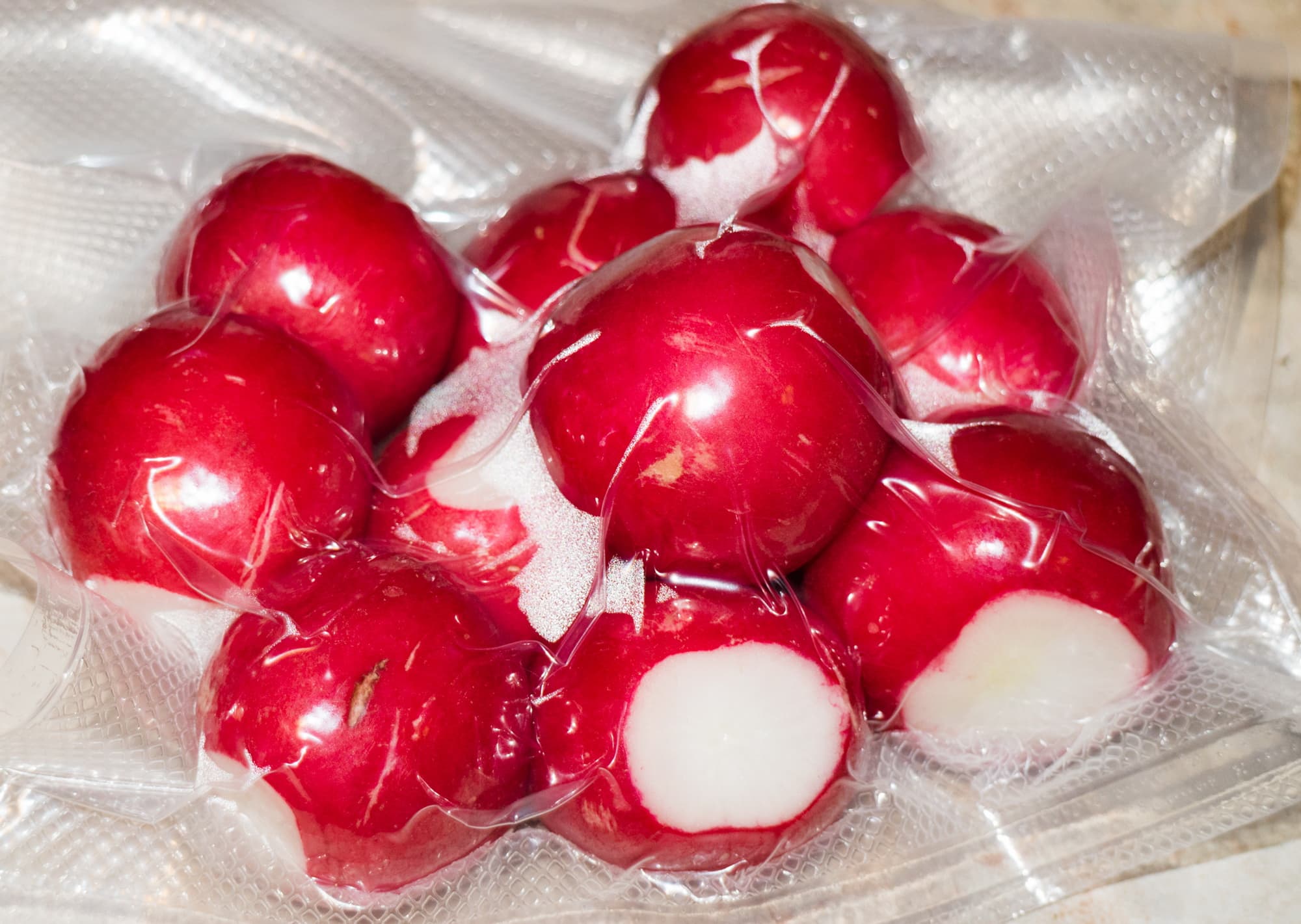Процесс упаковки с помощью Status BV500 нам настолько понравился, что остановиться было невозможно, пока не будет расфасовано по пакетам все, что для этого подходит. Так, мытый, очищенный и обсушенный редис после упаковки выглядел следующим образом: