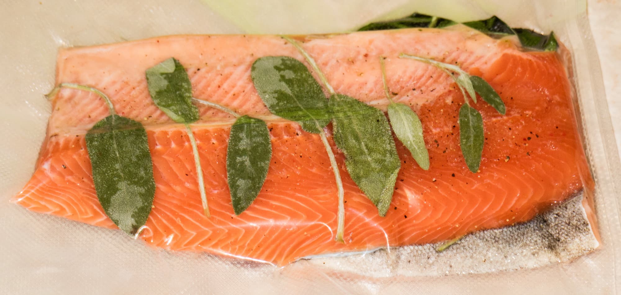 На следующий день мы приготовили одну порцию с использованием су-вида на 62 °C. Инструкция рекомендует хранить свежую рыбу 4-5 дней, поэтому вторую порцию было решено довести до максимального срока хранения. Готовили мы ее на пару́ через 6 дней. Можем сказать, что этот срок — максимальный для хранения рыбы. Форель была нормальной, но буквально на следующий день она бы уже «тронулась». Так что мы видим смысл в упаковке рыбы с помощью вакуумирования либо для хранения в морозильной камере, либо для приготовления в су-виде в ближайшие (2—4) дни.