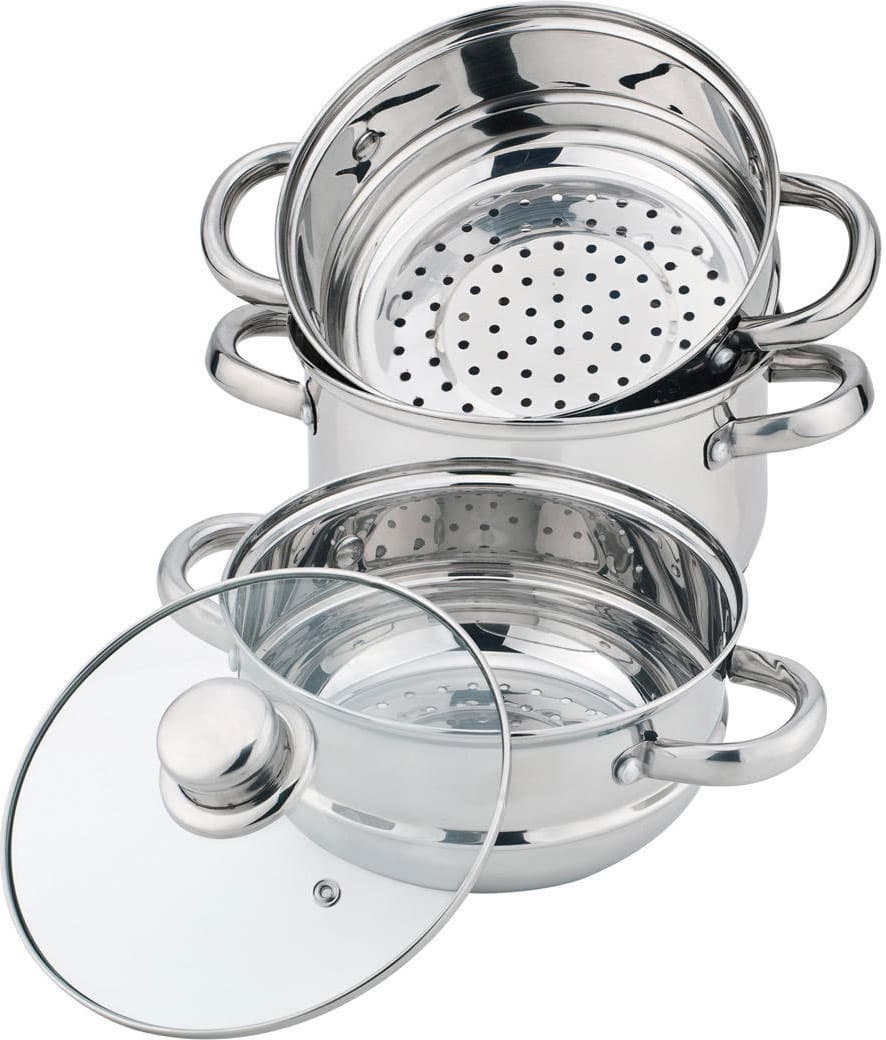 Если не нравится алюминий или есть потребность использовать пароварку на индукционной плите, то обратите внимание на стальные аналоги.