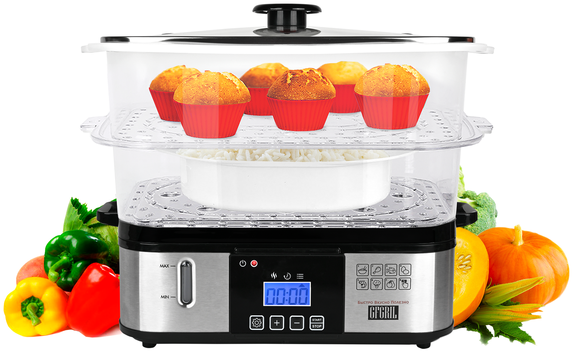 Практически каждая современная мультиварка оснащена специальным контейнером, который вставляется в чашу и позволяет готовить на пару́ не хуже, чем в отдельном устройстве.